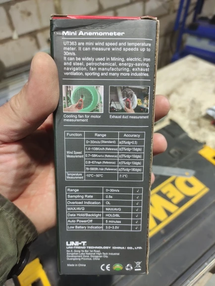 UNI-T UT363 Handheld Anemometer Digital Wind Speed Measurement Temperature Tester LCD Display Air Flow Speed Wind Meter