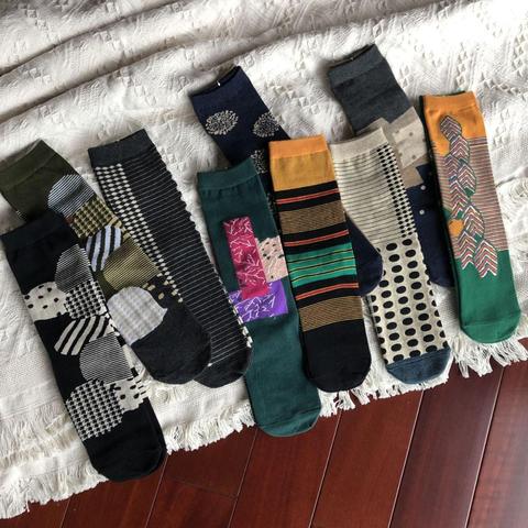 Unisex Cozy Warm Autumn Winter Womens Socks Combed Cotton Harajuku Japanese Colorful Funny Socks Retro Cartoon Geometry Tide Sox
