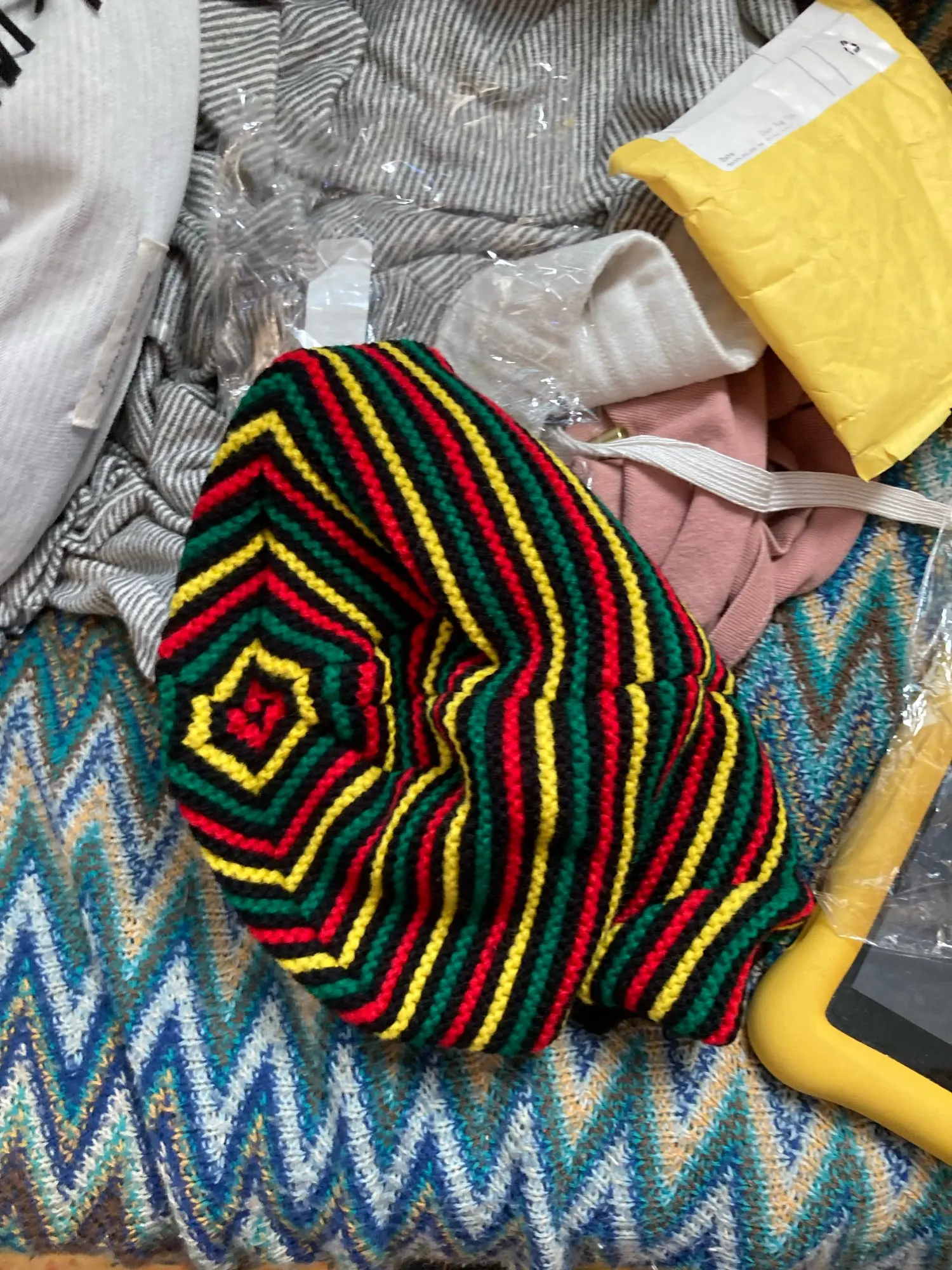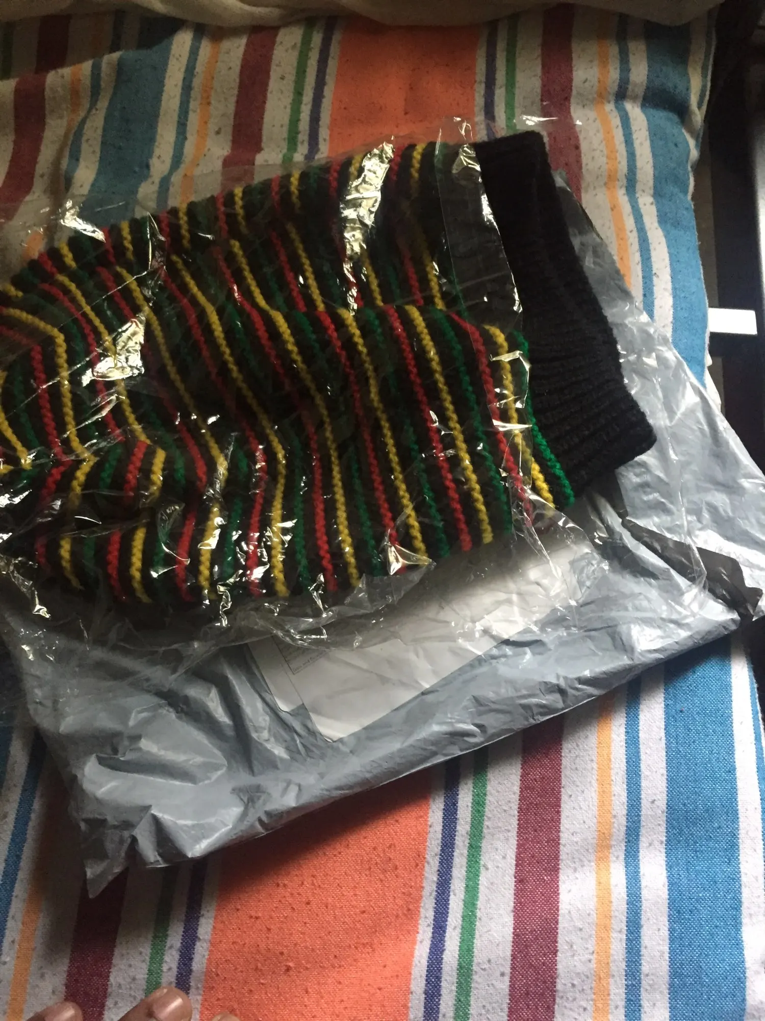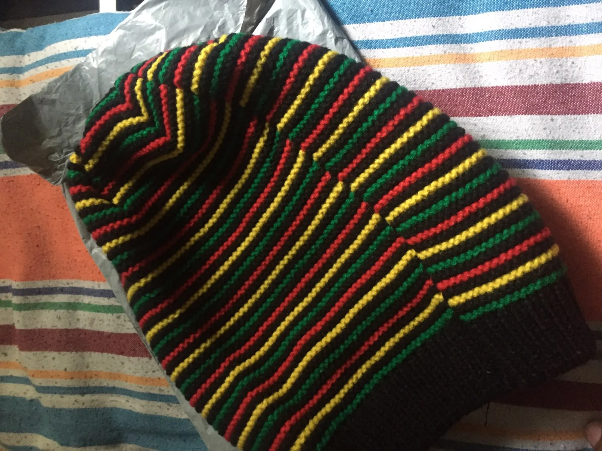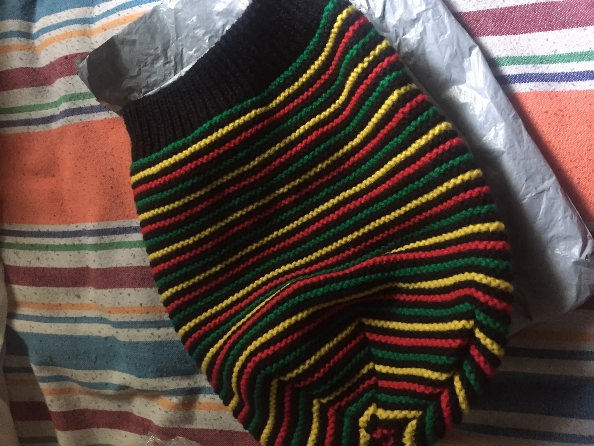 Unisex Crochet Wavy Fine Stripes Beanie Cap Rainbow Jamaica Flag Baggy Skull Hat