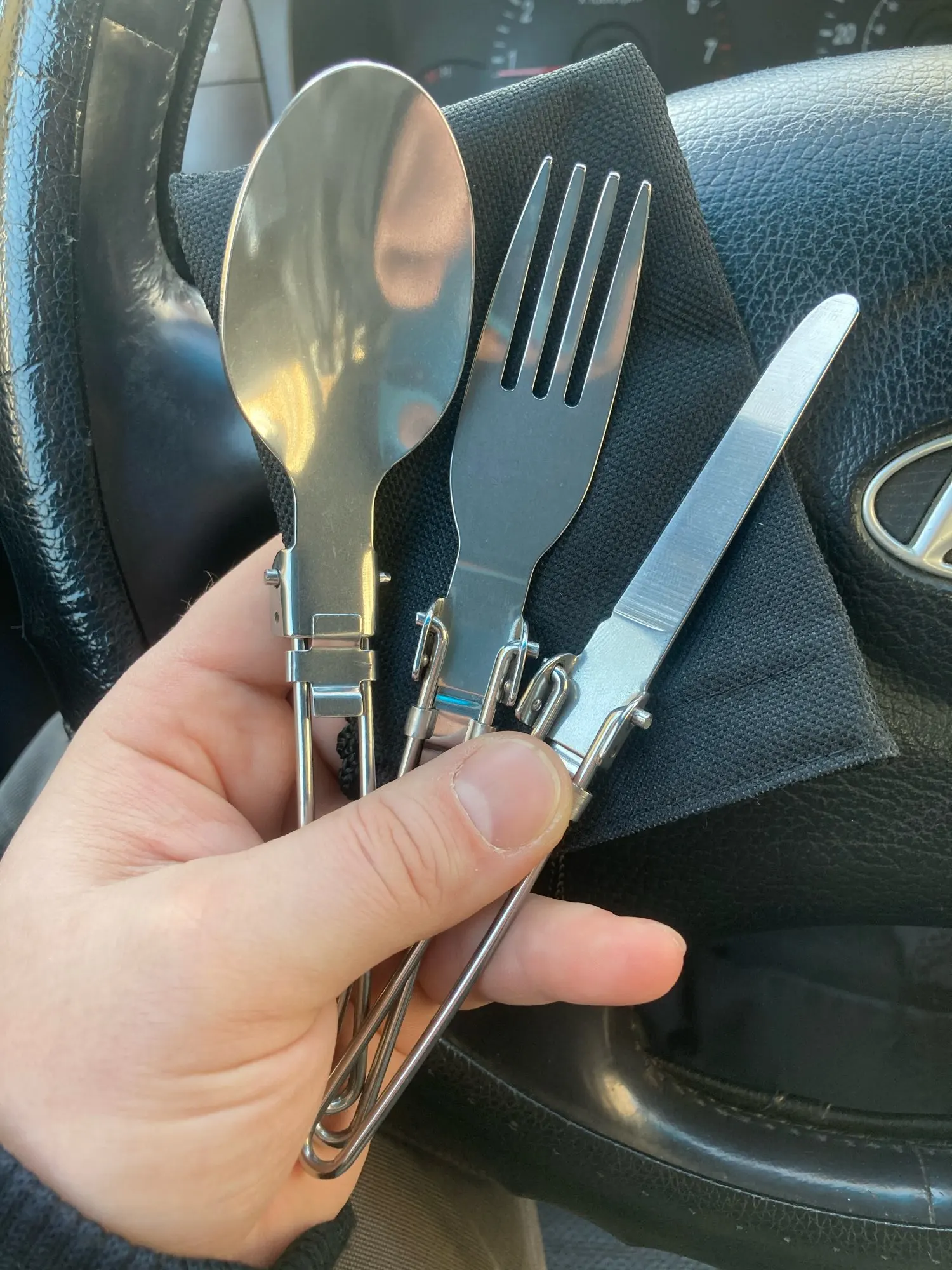 Utensil set combo long cookware cutlery tableware flatware spoon stainless steel Picnic camp fold knife Spork fork backpack