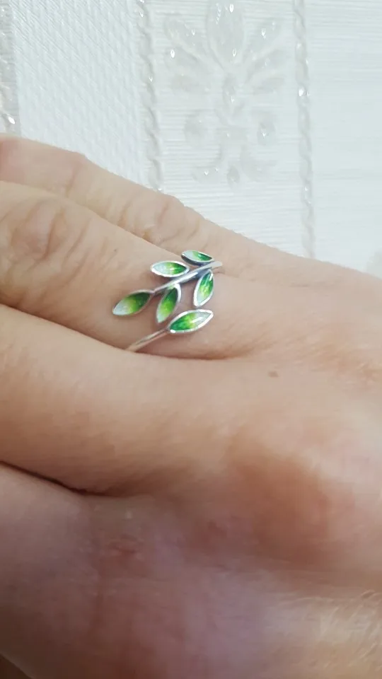 V.YA Real 925 Sterling Silver Green Enamel Leaf Ring Vintage Adjustable Ring Elegant Fine Jewelry For Women Party Accessories