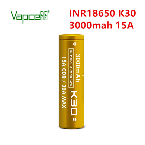 Vapcell original INR18650 3000mah 15A K30 3.7V lithium battery Li ion rechargeable 18650 Batteries for flashlight power tools