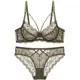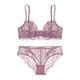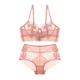 Varsbaby Sexy Plus Size Floral Lace Unlined Underwear Deep V Hollow 3/4 Cup Underwire ABCDE Cup Bra Set