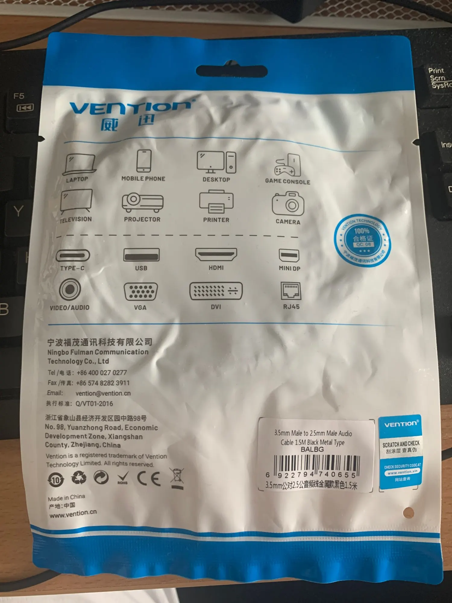 Vention 2.5mm to 3.5mm Aux Cable Jack 3.5 to 2.5 Male to Male Audio Cable for MP3 SmartPhone Speaker Moible Phone for Aux Cord