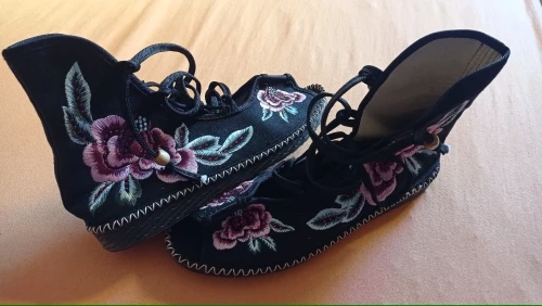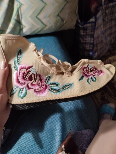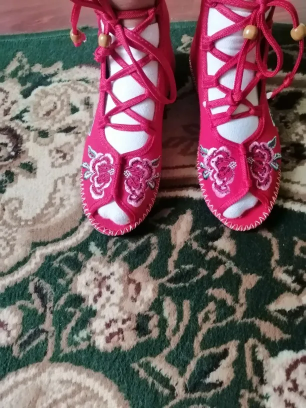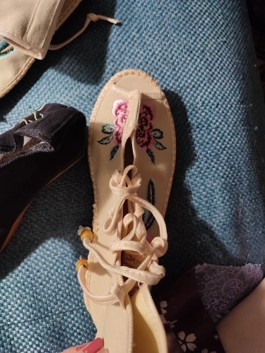 Veowalk Handmade High Top Women Canvas Flat Gladiator Sandals Open Peep Toe Summer Cotton Embroider Lace Up Shoes Sandials Mujer