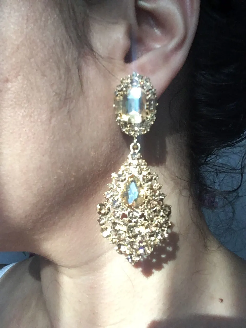 my sister said 'thank you for the Pat Butcher earrings' and i thought the same. BUT they do look better on than in the photo, just a bit too orangey to pass as 'gold coloured' for me, but they do catch the light well and would be fabulous at a Bollywood themed event or so.