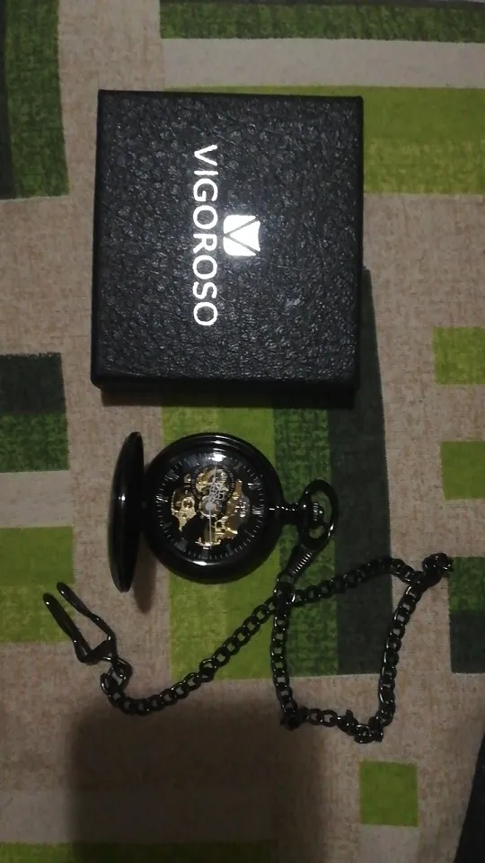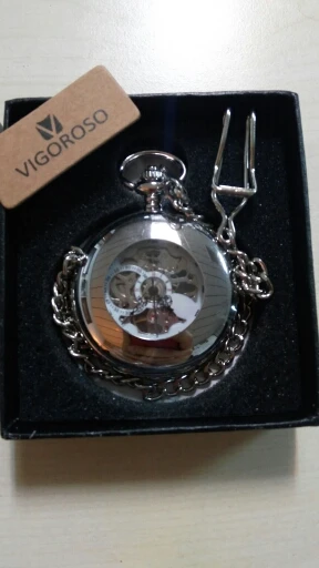 Looks as described, works great, goes 40 hours on one winding. Note that the outer lid window is a hole, not glass; and the face is plastic.