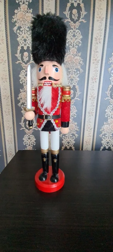 VILEAD 30cm Fine Nutcracker Wooden Crafts Vintage Handcraft Home Livingroom Decoration Ornaments Christmas Gifts