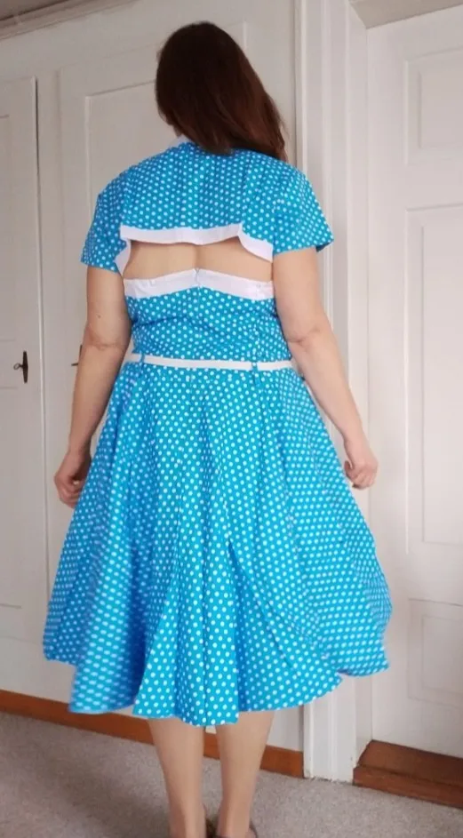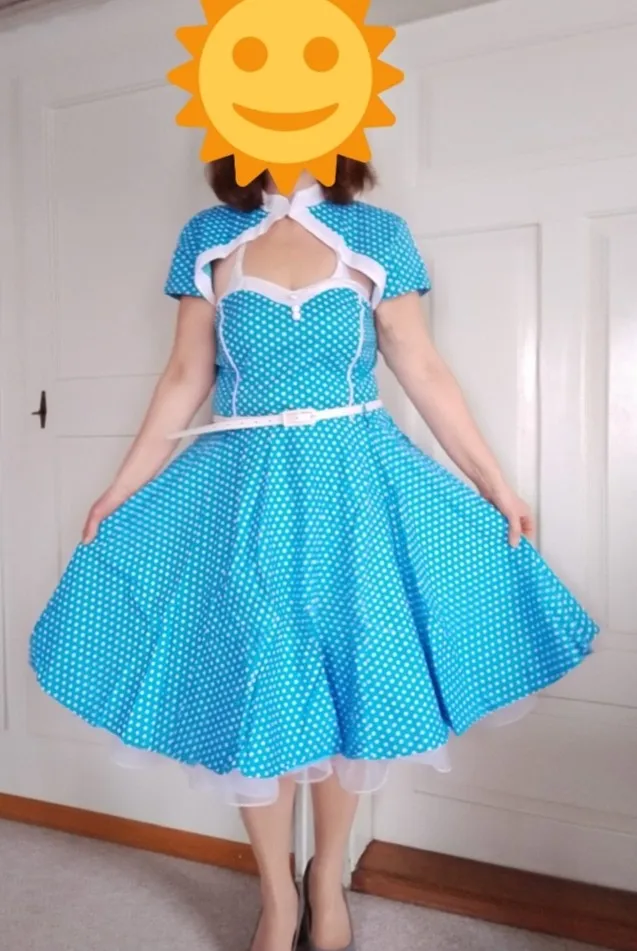 Vintage 1950s Swing Rockabilly Blue or green, black Polka Dot Evening Party Dress