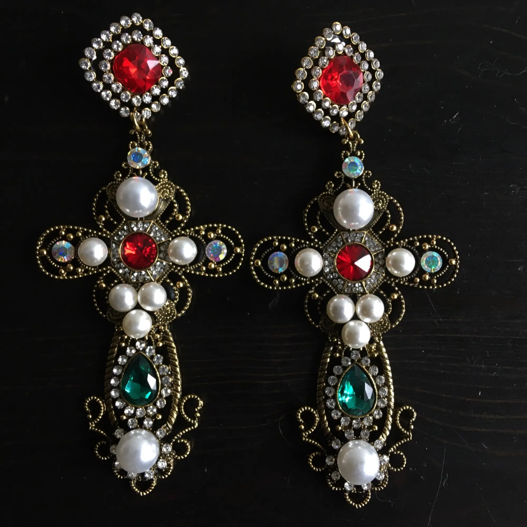 Vintage Baroque Style Rhinestone With Pearls Gems Big Cross Earrings for Women Perfect Quality Women Dangle Drop Earrings