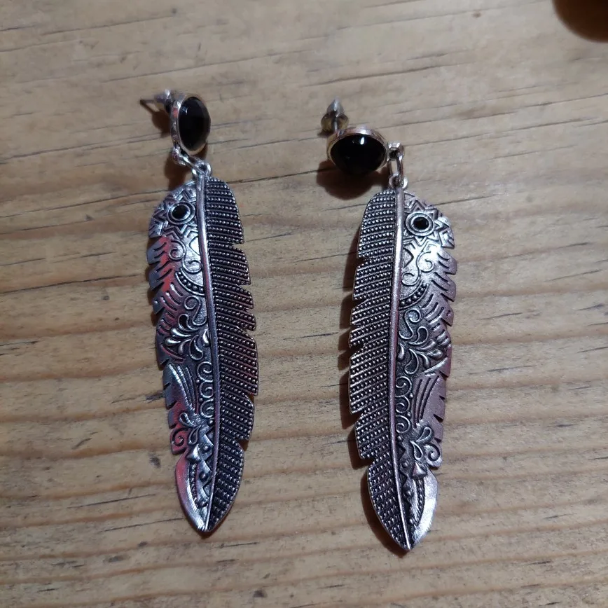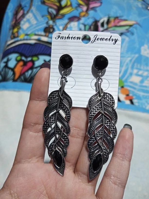 Vintage Black Earrings Long Leaf Drop Chandelier Ethnic Feather Earrings Accessories Women Gypsy Boho Tibetan Jewelry