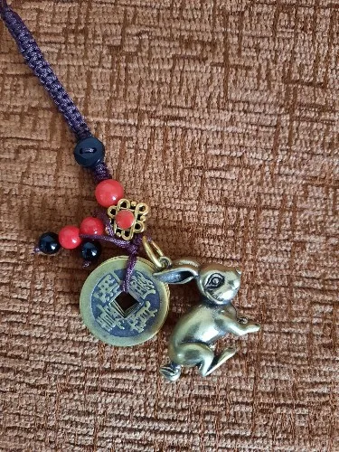 Vintage Brass Zodiac Rabbit Keychain Lanyard Pendants Handmade Braided Rope Chinese Five Emperors Coins Lucky Feng Shui Hangings