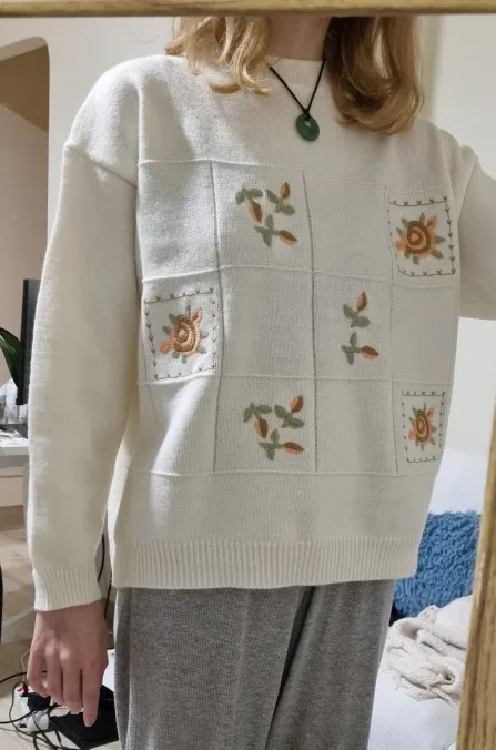 Vintage Embroidery Winter Sweater Women Pullover Oversize Korean Harajuku Clothing Loose Knit Jumper Kawaii Ulzzang Knitwear