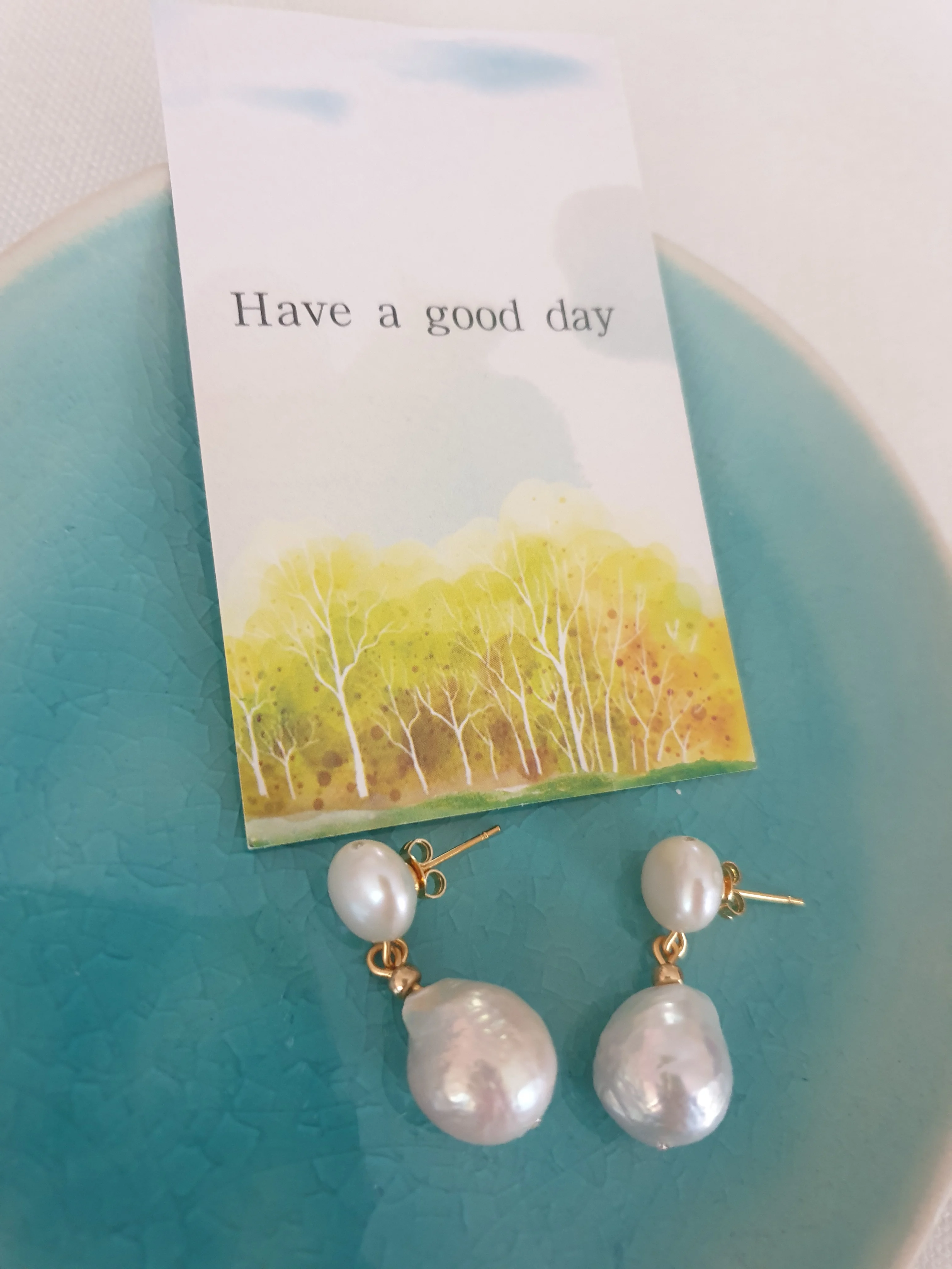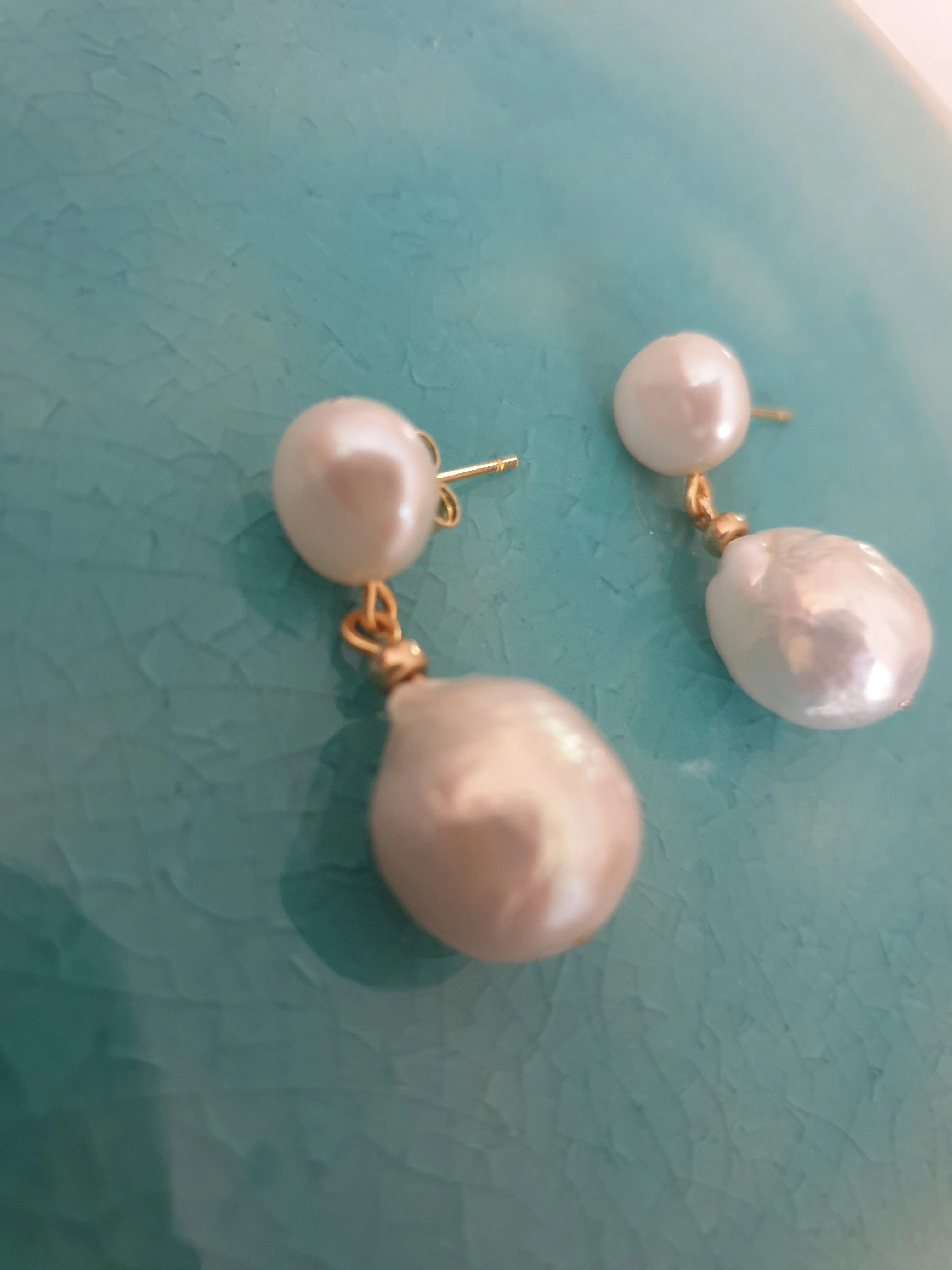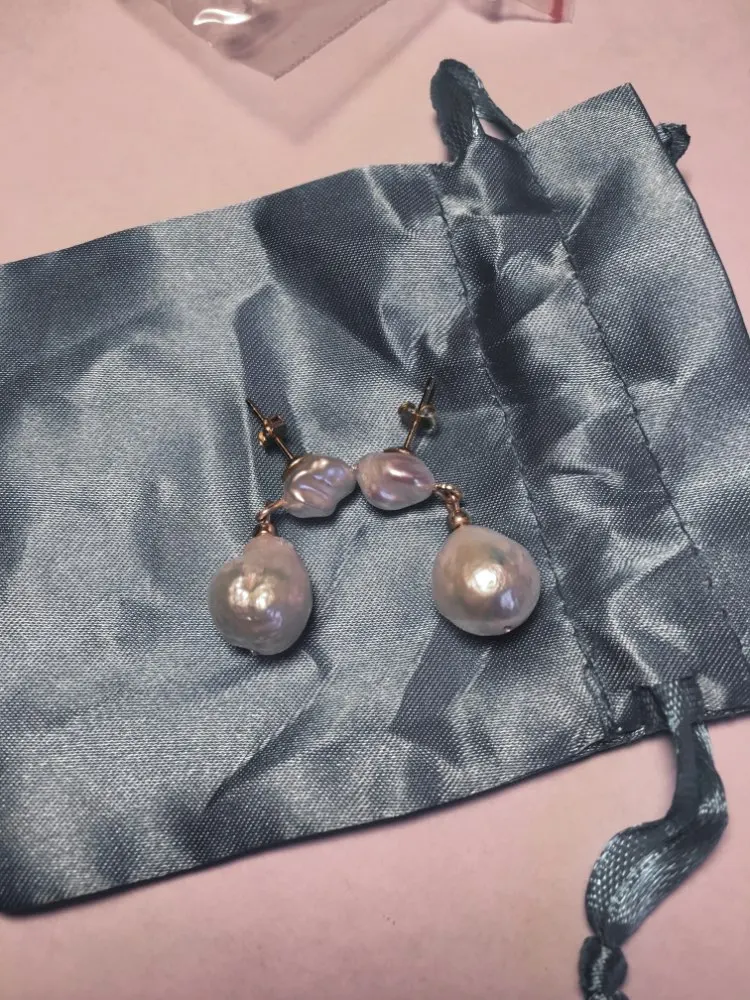 Vintage ladies pearl earrings, white natural baroque pearls, women's gold earrings, short earrings, ladies earrings
