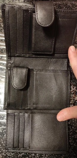 The wallet is beautiful and well distributed, all my documents and cards fit perfectly, it has enough space for it. The product arrived quite quickly. As a bad thing, the product is not made of genuine leather as mentioned in the description, I had bought this product without having read the description well, where they mention that it is genuine leather, the truth is I chose the product because I found it beautiful and elegant and for the price I knew this product was not genuine leather (Note that photos in the post appear to be real leather). Despite this, the PU leather material appears to be resistant and pleasant to the touch. The internal partitions, textile linings and the chain look like any ordinary wallet. In general terms, the product seems excellent for the price and very nice with a motorbiker and rocker style.