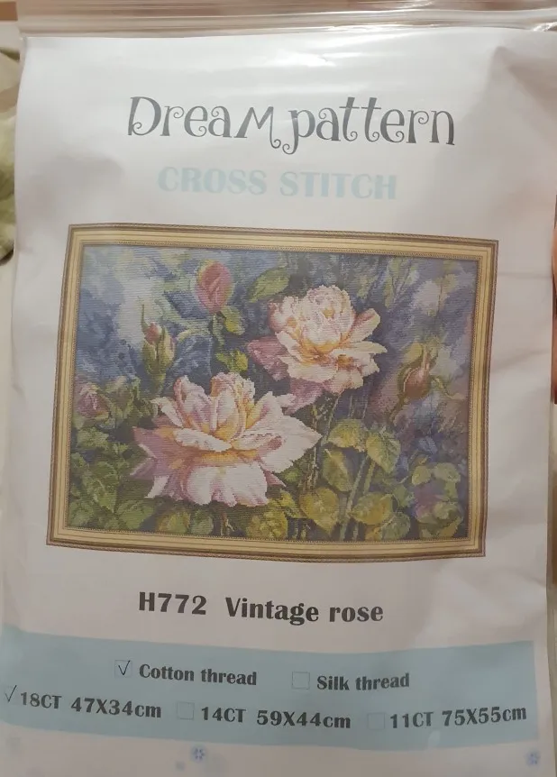 Vintage rose cross stitch kit aida 14ct 11ct count print canvas cotton silk thread stitches embroidery DIY handmade
