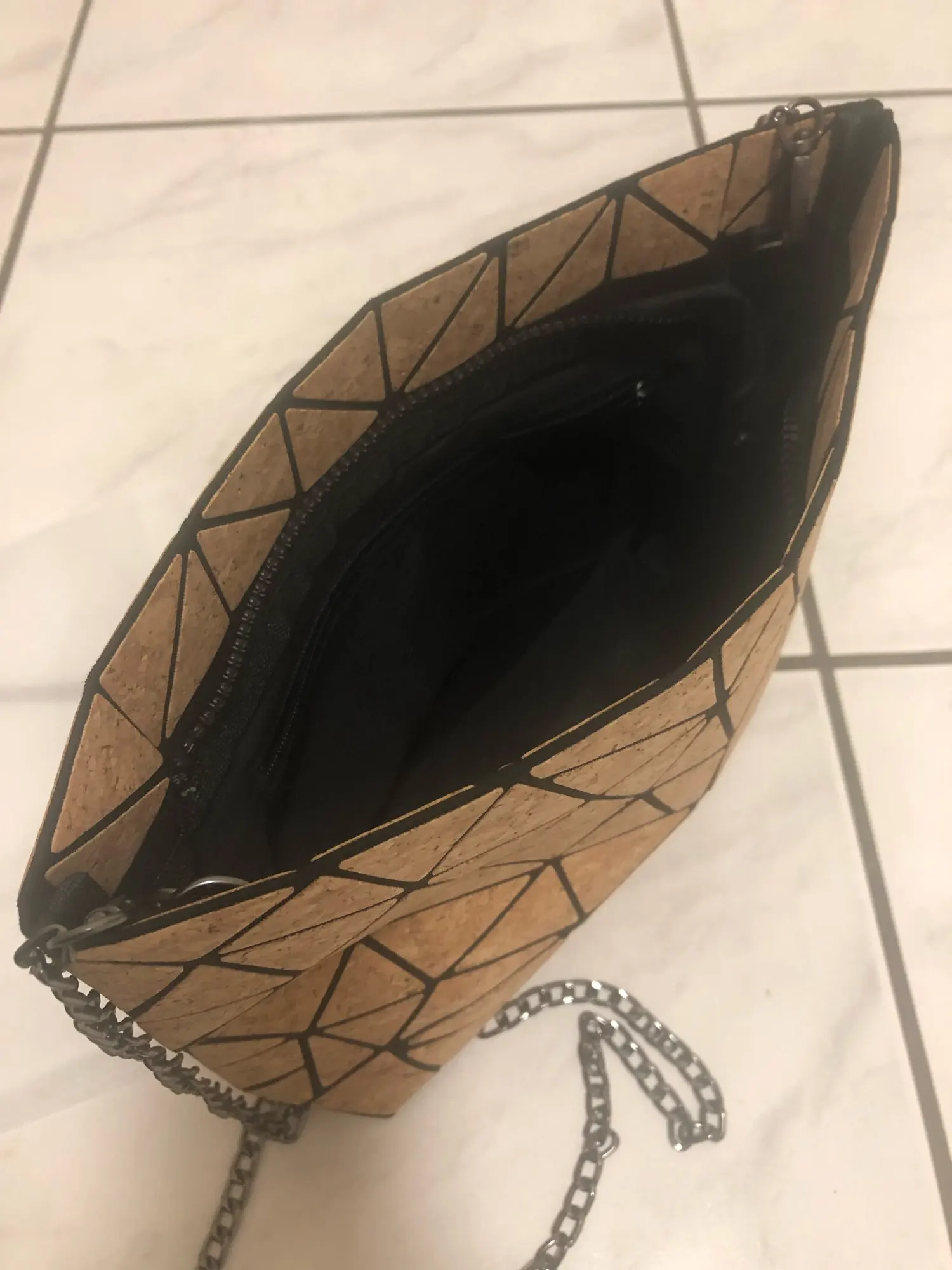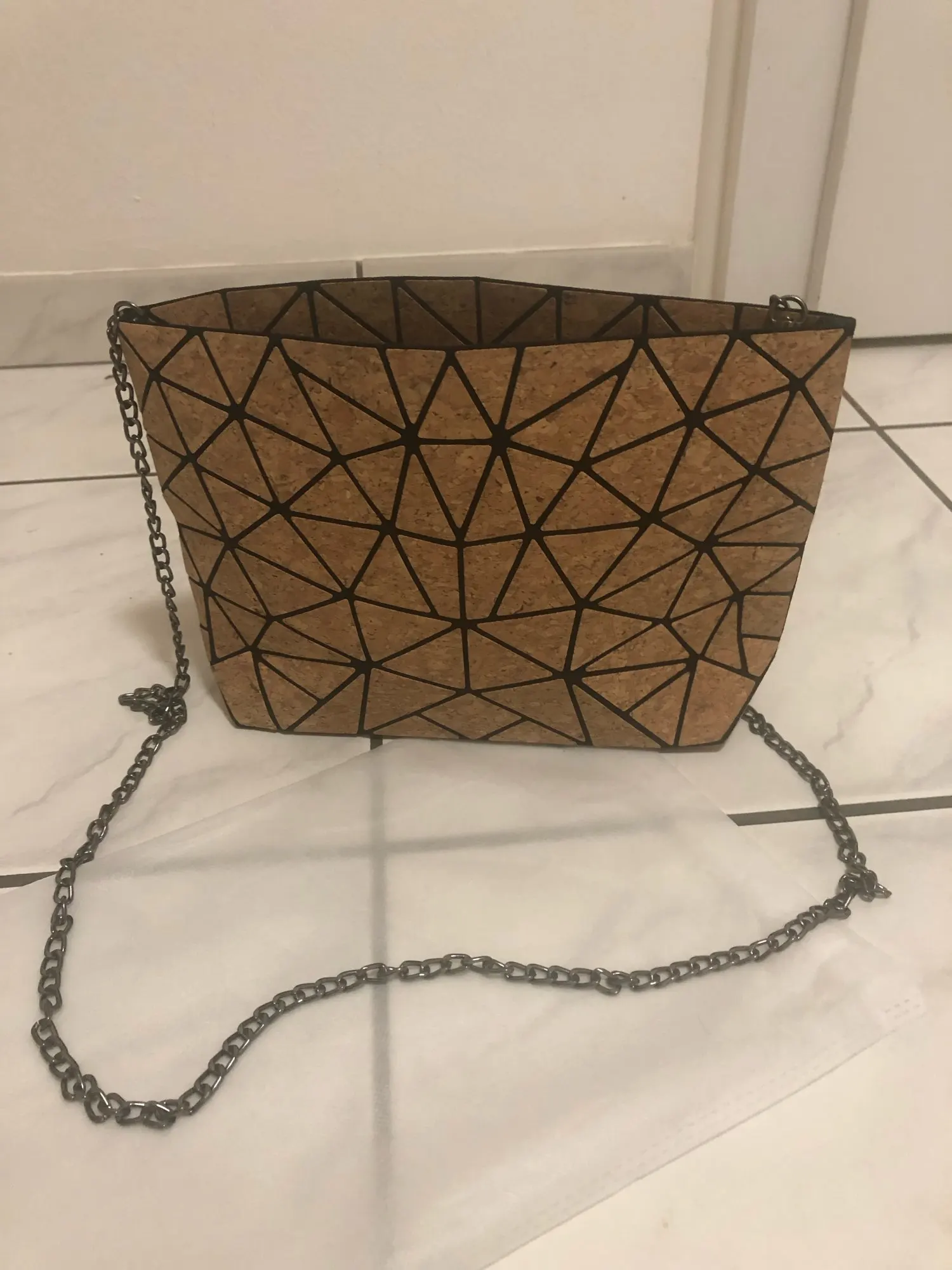W639 KANDRA Chain Diamond Geometric Cork Shoulder Bag Deformation Bucket Bag Women Totes Irregular Folding Crossbody Bag Bolsas