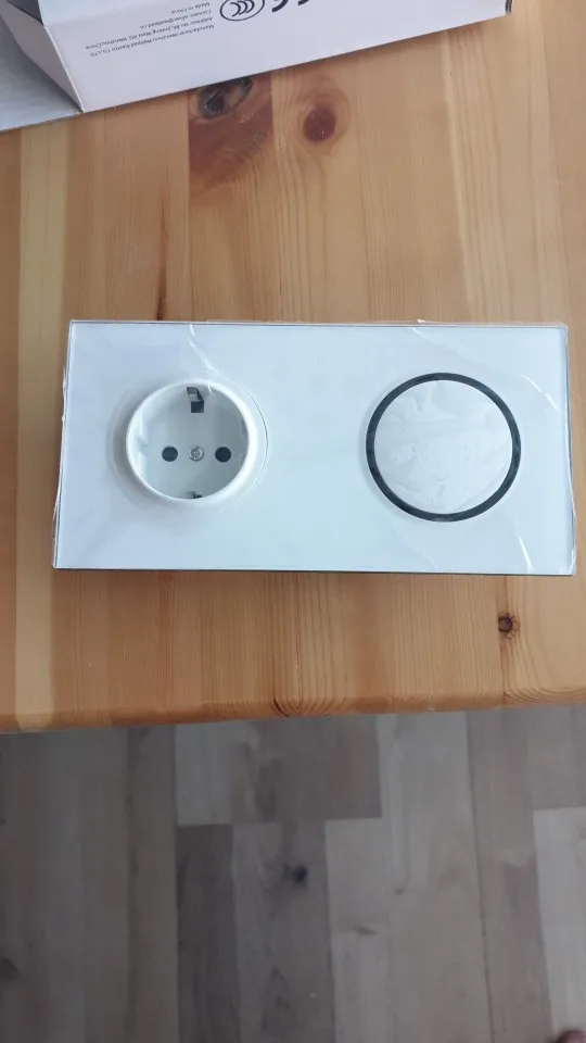 Wallpad L6 White 1 Gang 1 Way 2 Way Wall Light Switch With German Schuko SocketRandom Click Push Button Tempered Glass Panel
