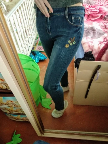 Warm Jeans With Embroidery Winter Women's Slim Denim Stretch Skinny Velvet Jeans For Women Warm Jeans Female Denim Pencil Pants
