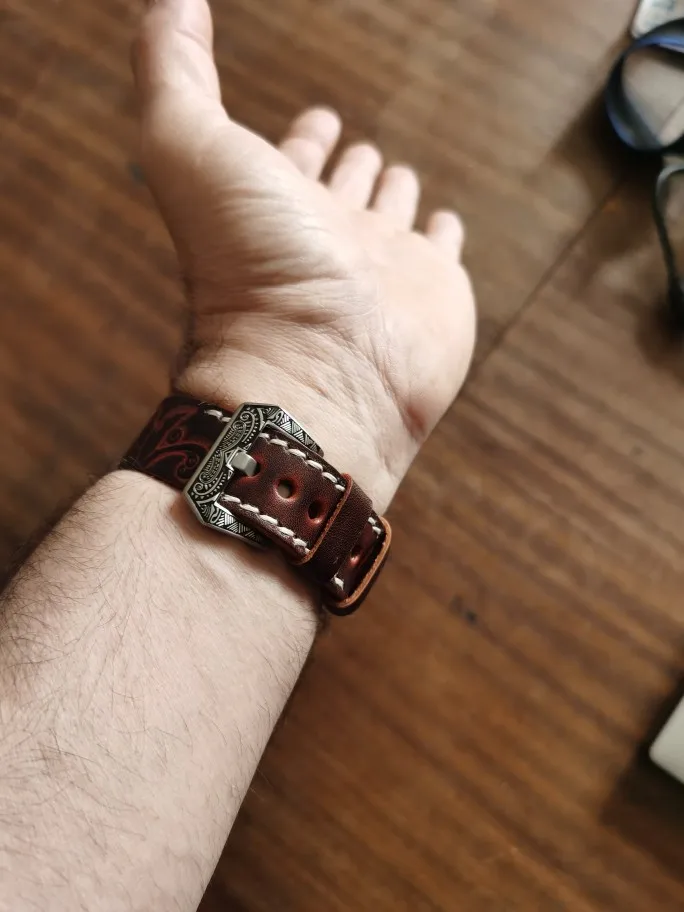 Watch Band 20mm 22mm Vintage Leather Carved Embossed Watch Straps for Panerai Watchband With Carved Buckle Engraved Clasp