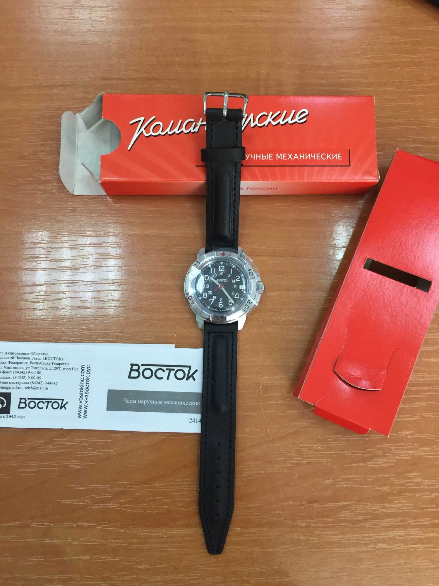 Watch Vostok Komandirskie 431783 mechanical men's military watch hand winding black dial