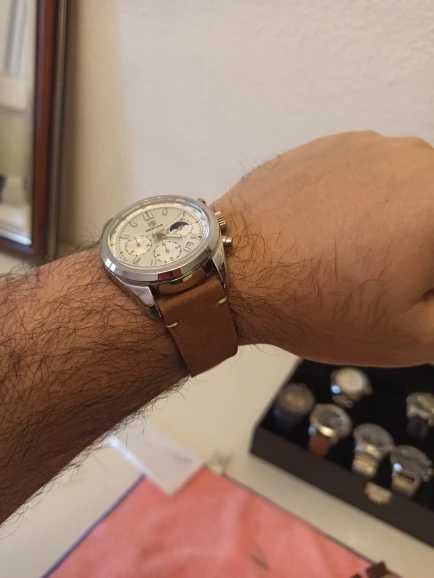 Item received - thank you . This leather strap does NOT have the easy clip-on pins at the end, unfortunately. So best to use as a permanent strap on a watch rather than on one that you can change in a hurry. All the best.
