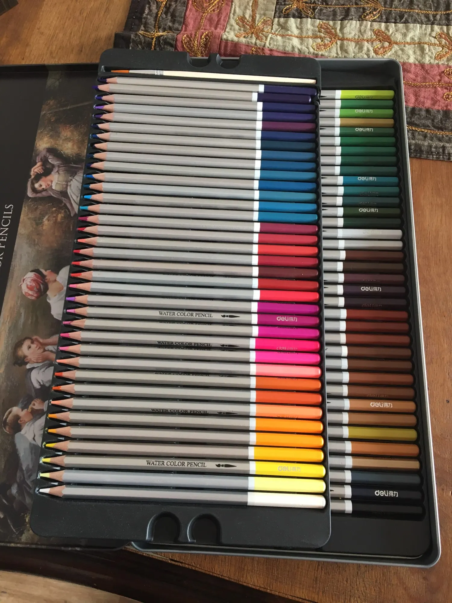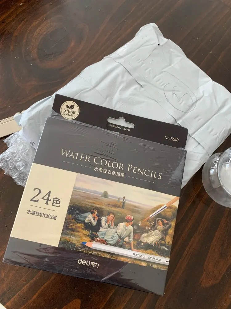 It came very quickly! The colors are beautiful, it's just like normal colored pencils when it's dry; but with water added the colors are vibrant :D