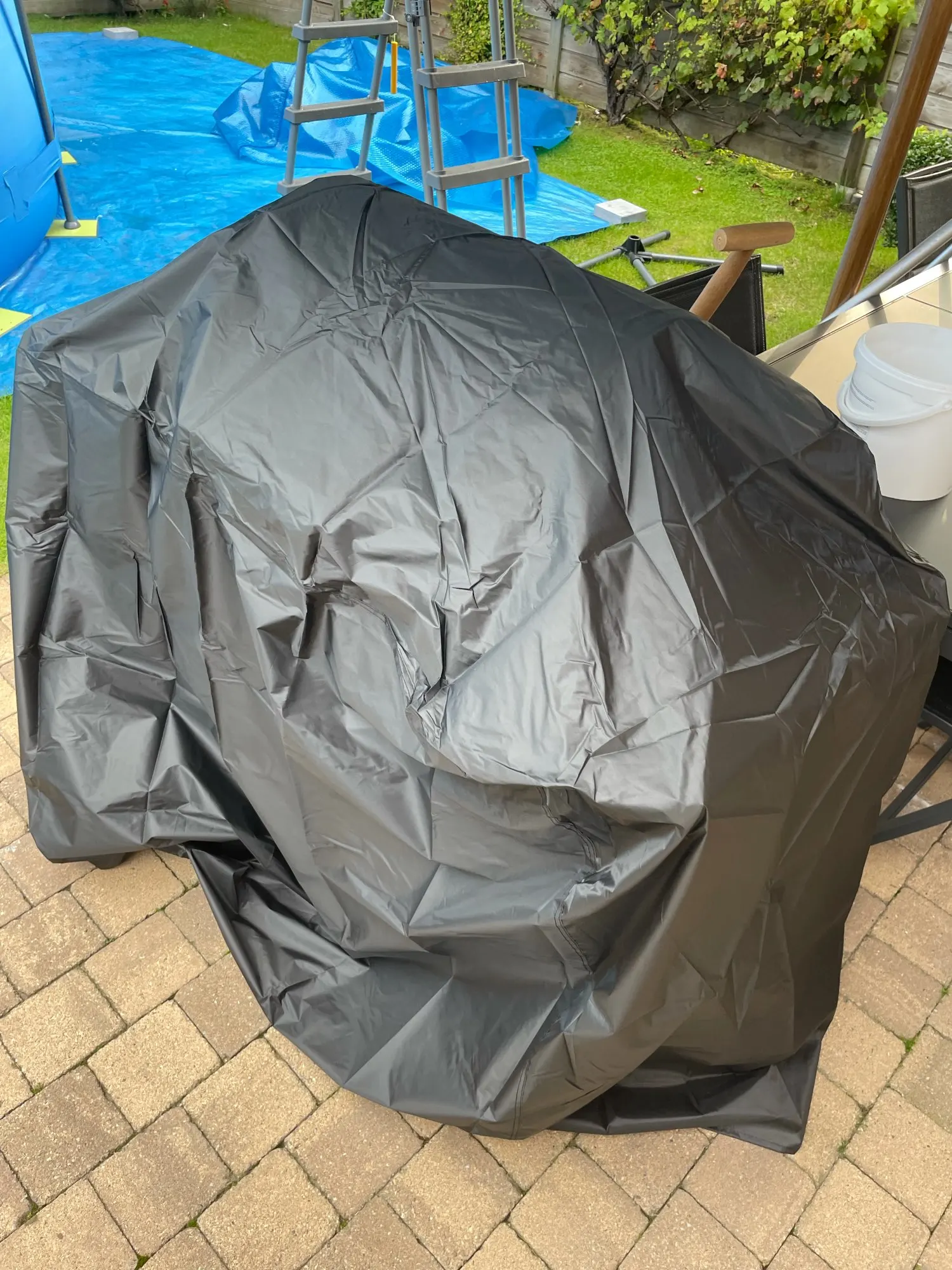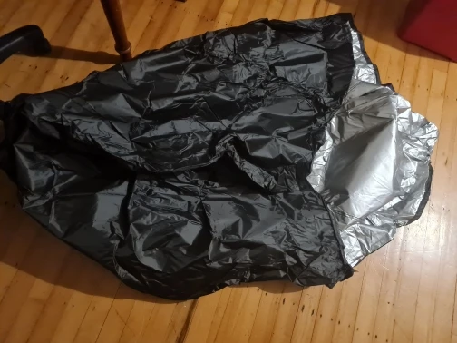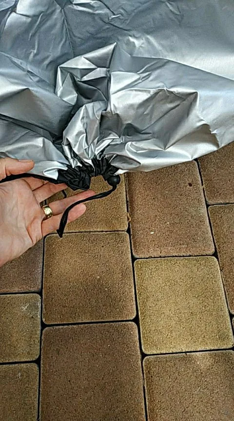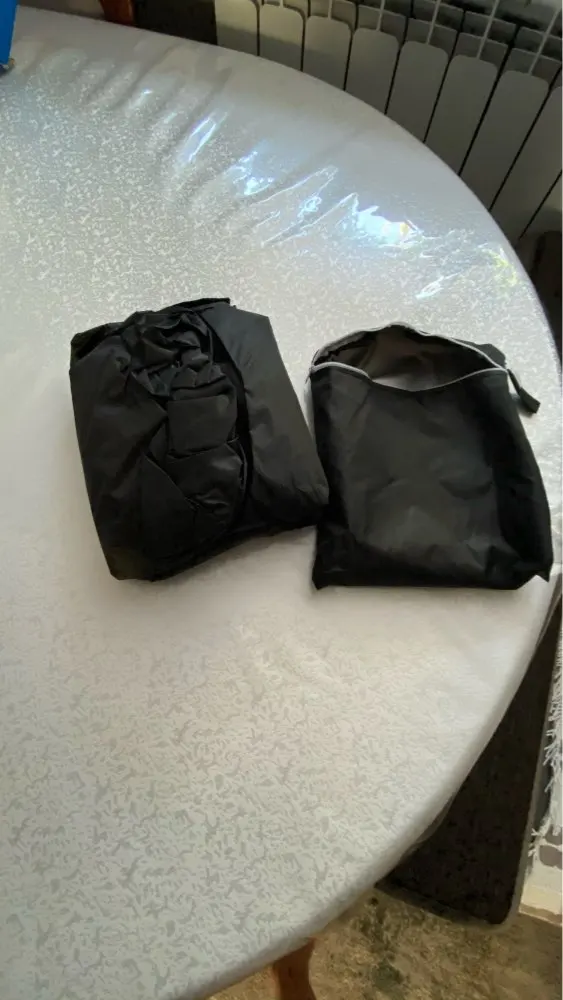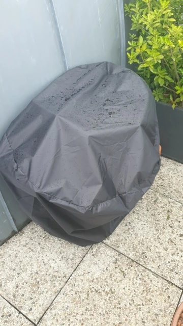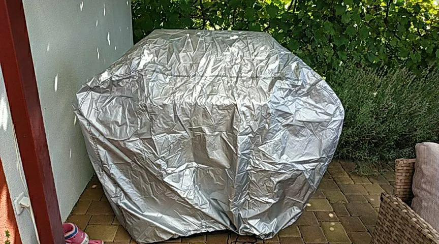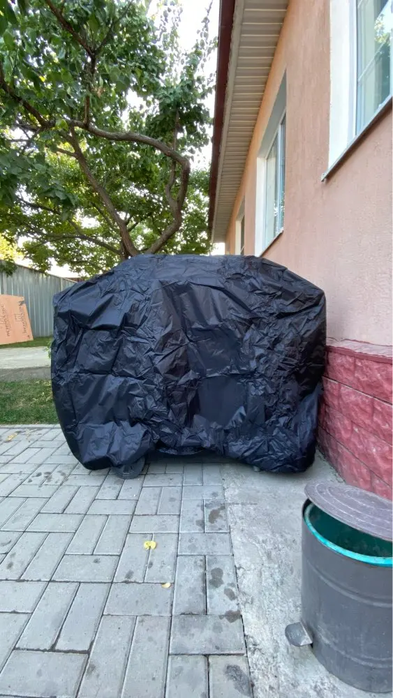 Good quality BBQ cover. Comes with a storage pouch. It's our second one, the first one blew away in a huge storm.