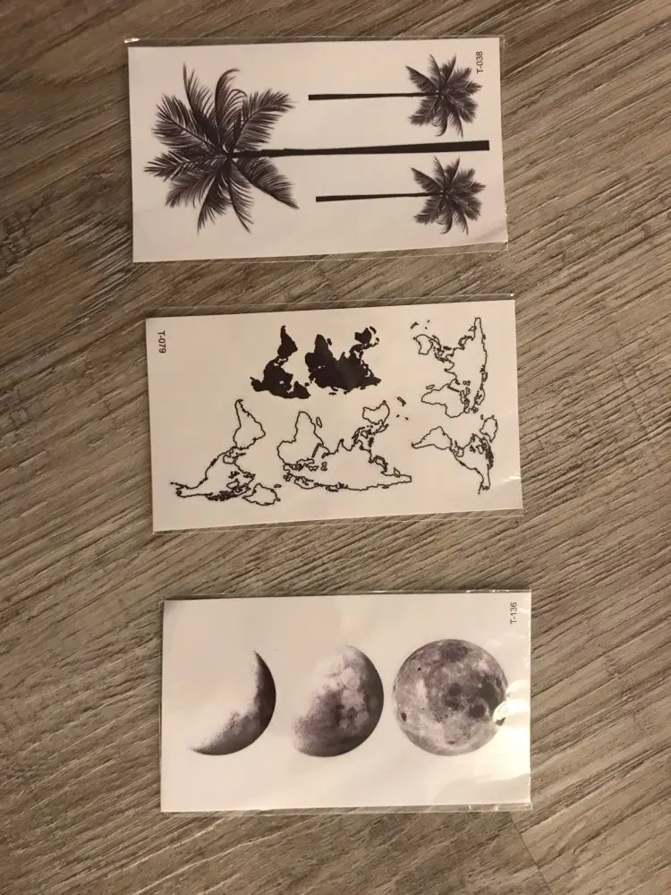Waterproof World Map Temporary Tattoo Sticker Women Coconut tree planet pattern Body Art New Design Fake Men Tattoos
