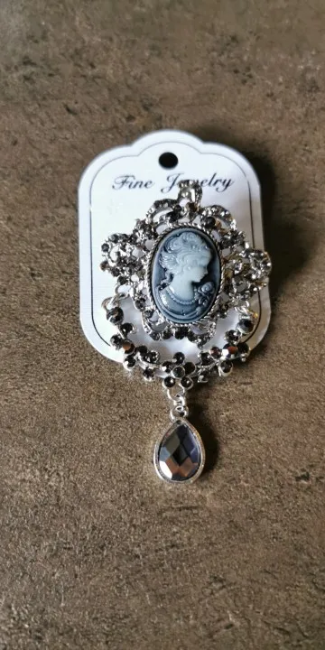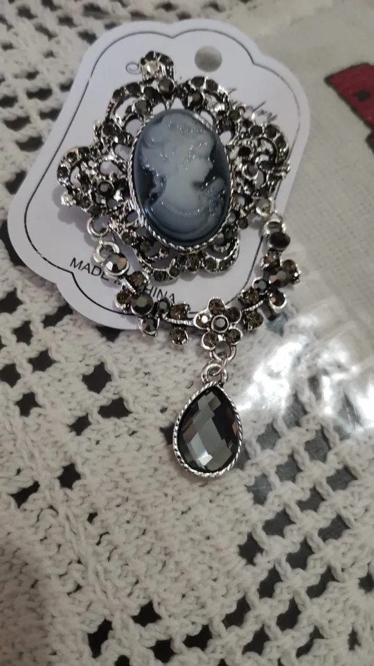 WEIMANJINGDIAN Vintage Style Crystal Rhinestones Teardrop Cameo Brooches in Antique Metal Color