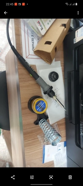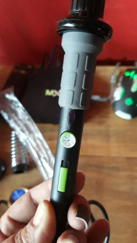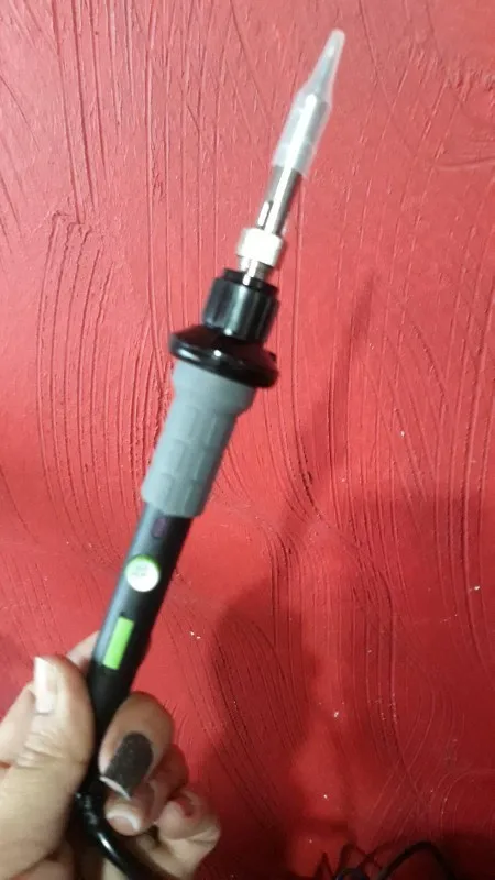 Very nice soldering iron. **The switch has 3 positions: 0 Everything is off. 1 The iron is on; the purple LED indicates when it is heating (goes off when the desired temperature is reached). 2 is like the previous mode, plus the 3 front LEDs are now on, to illuminate the workpiece. **The lighting The 3 LEDs cast a small shadow at the tip when you are close. **The way I use it: I leave the switch on the last position all the time, so when I plug it in, the purple LED is on (while heating up) and when the LED goes off, I know the working temperature is reached. And the 3 LEDs are always on, so I do not forget to unplug it when I am finished! **Temp selection: the wheel is colored (green/red zone), which enables fast adjustement without having to read the dial (other brands where it's white on grey, not easy to read). Heating up takes 5-10 seconds, depending on the desired temp. **The stand is made of metal, and has an adhesive pad underneath. Sticks very well to hard surfaces.