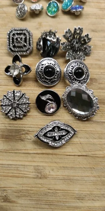 Wholesale 10pcs/lot 18mm Snap Jewelry Mix Many Styles 18mm Metal Snap buttons Silver Color buttons Rhinestone Snaps Jewelry