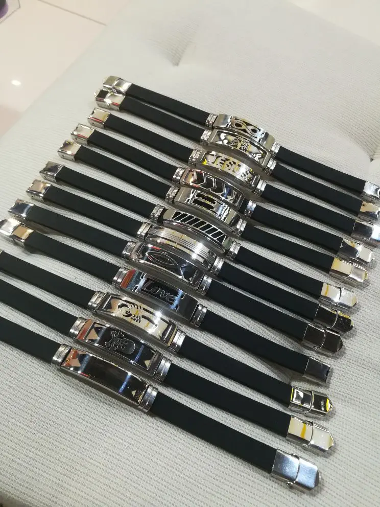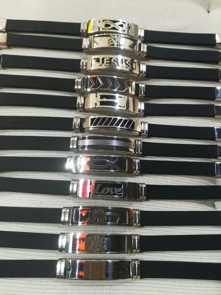 Wholesale 12pcs/Lot Stainless Steel Jesus Skull Tree of life Love Silicone Charm Bracelets Jewelry 21cm/8.27inch
