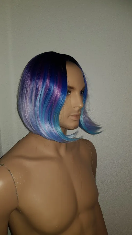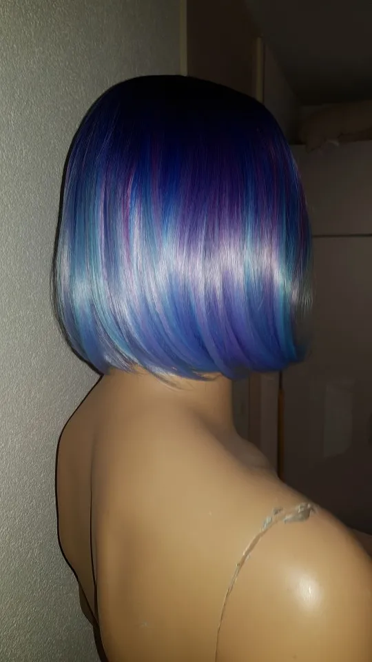 Wignee Short Straight Hair Synthetic Wigs Mixed Purple/Blue Natural Black Rainbow Wig Glueless Cosplay Women Hair Daily Wigs