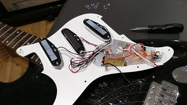 Arrived in 7 weeks. Came well wrapped (3 times bubble foil). Haven't installed them yet. Bridge: 5.75. Middle: 5.37. Neck: 5.47. Screws and springs were not included.