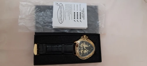 What a beautiful watch, and is heavy too, feels like great craftmanship and looks just amazing, i am really happy with my purchase, i can't wait to wear it! Thank you