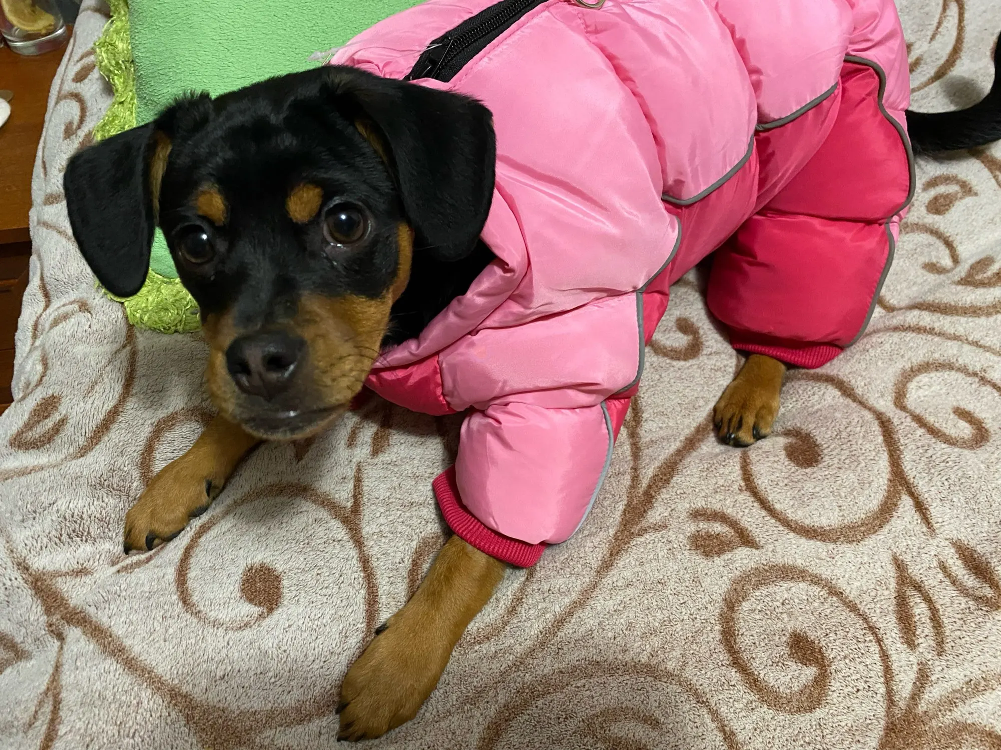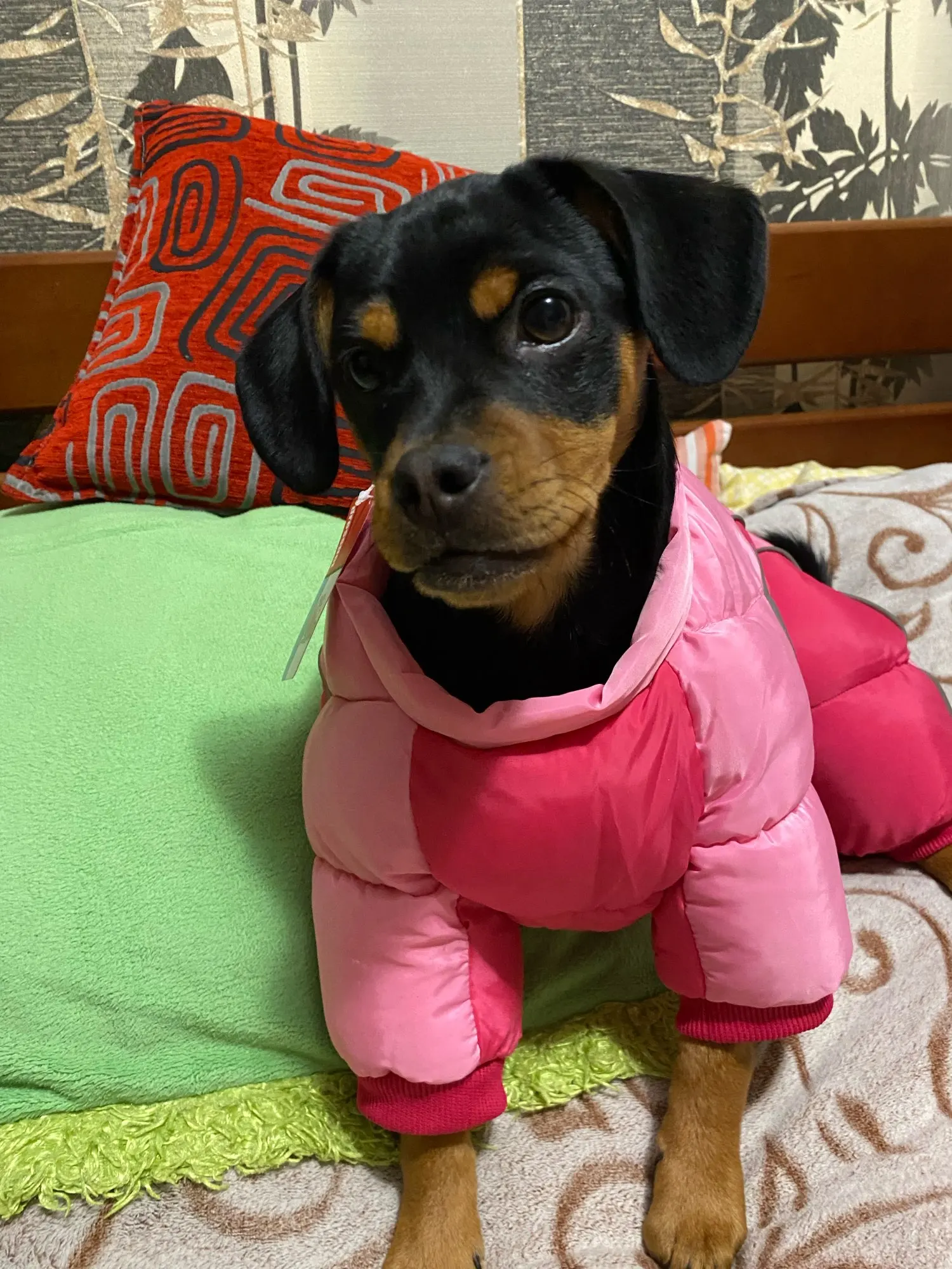 Fits my 8lb dog perfectly! Could have gone a size larger to fit sweaters underneath for extra warmth.