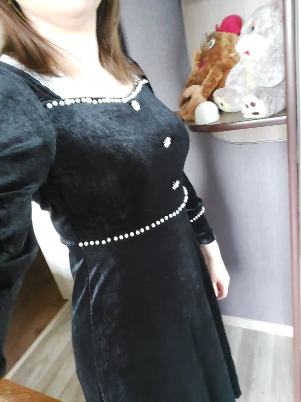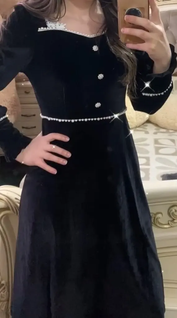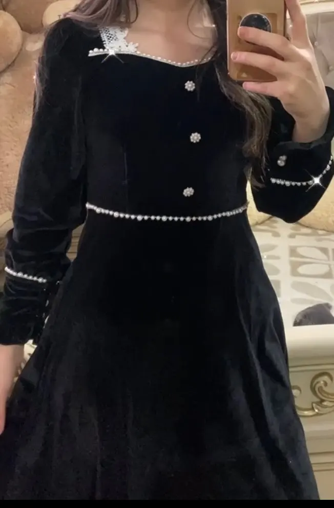 Winter Vintage Black Dress Women Casual Elegant Long Sleeve Square Collar Gothic Party Dress Female 2022 One-piece Dress Korean