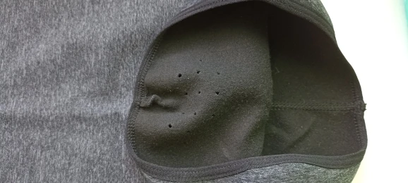 Just received it. The horizontal stitch between the mouth and the nose is slanted and the corner metal strip for the nose is poking out through the fabric. But, this is a cheap disposable product after all. I find the design with the metal strip very useful for relieving pressure on the tip of my nose and will probably buy this again next year when they have better quality control.