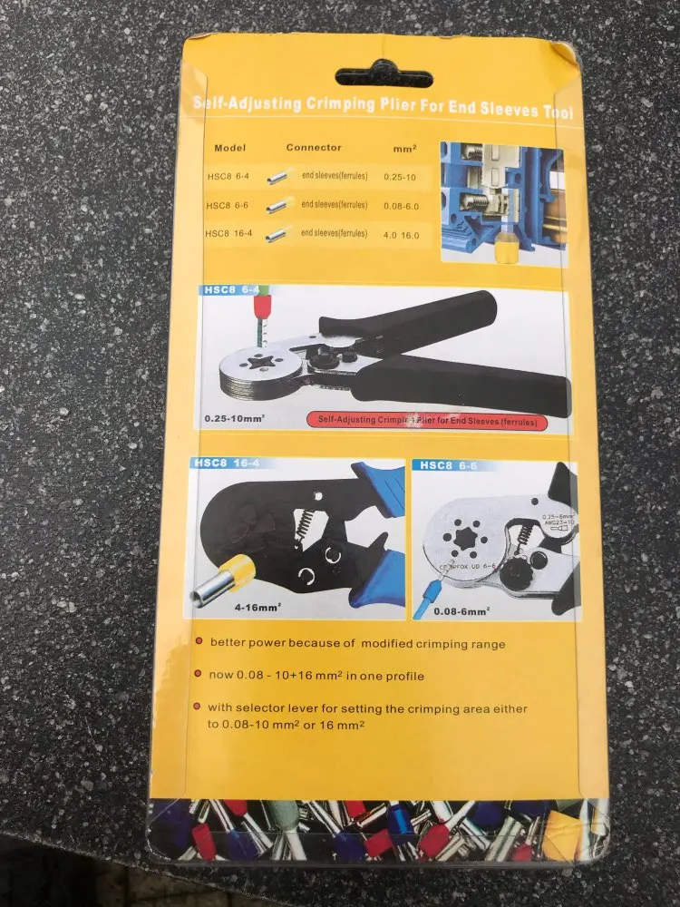 The largest ferrules does not fit in the plier hole, they are too big. Besides that the tool has very good quality.