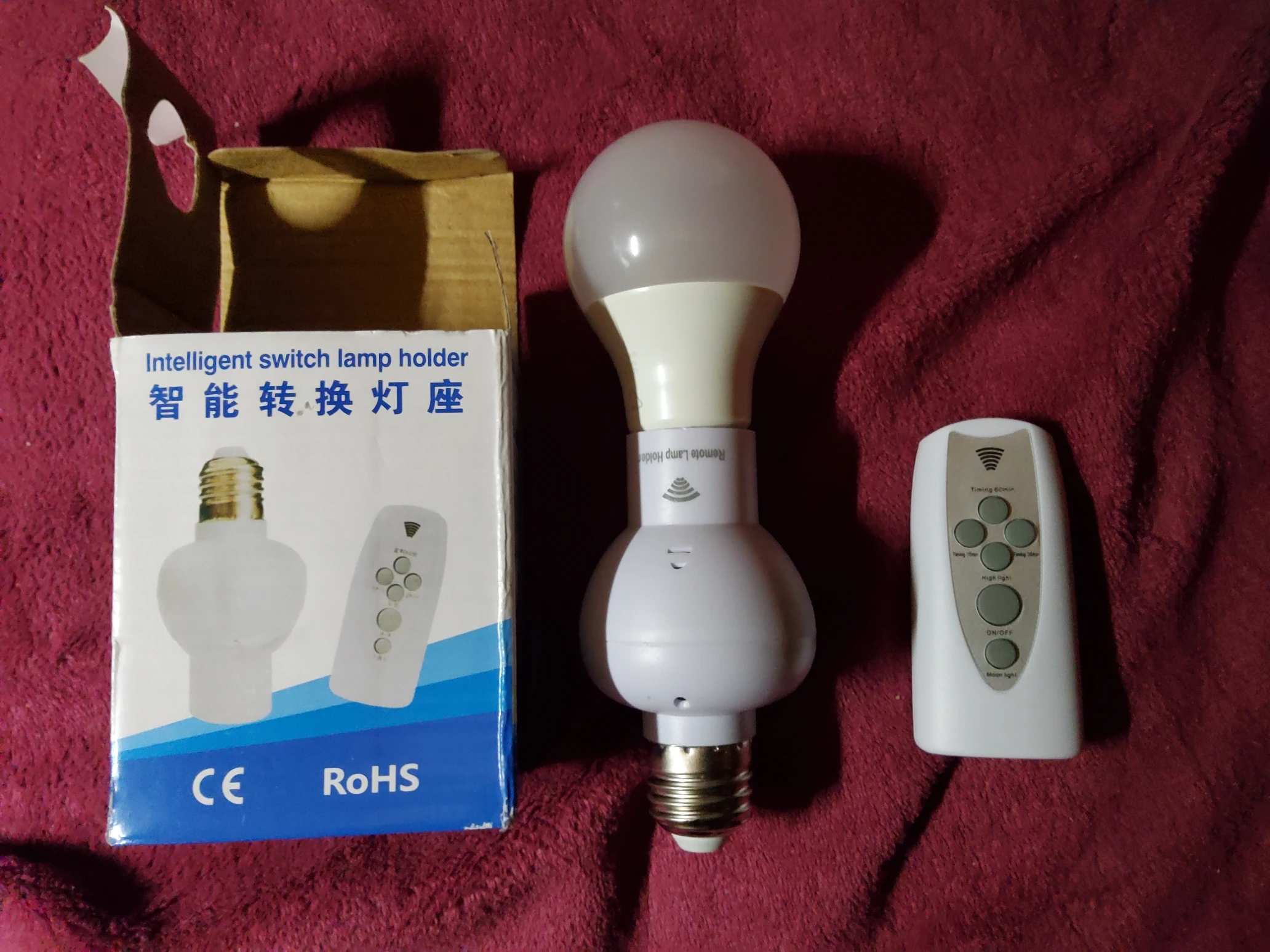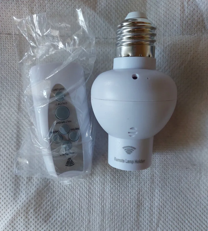 Works through a window at 5 meters too. Uses AAA not AA batteries as in the description. The only nitpick is that you can not rotate the unit to adjust the infrared receiver position. You screw it into the socket and hope it faces in a usable direction (e.g. not towards a wall for example).