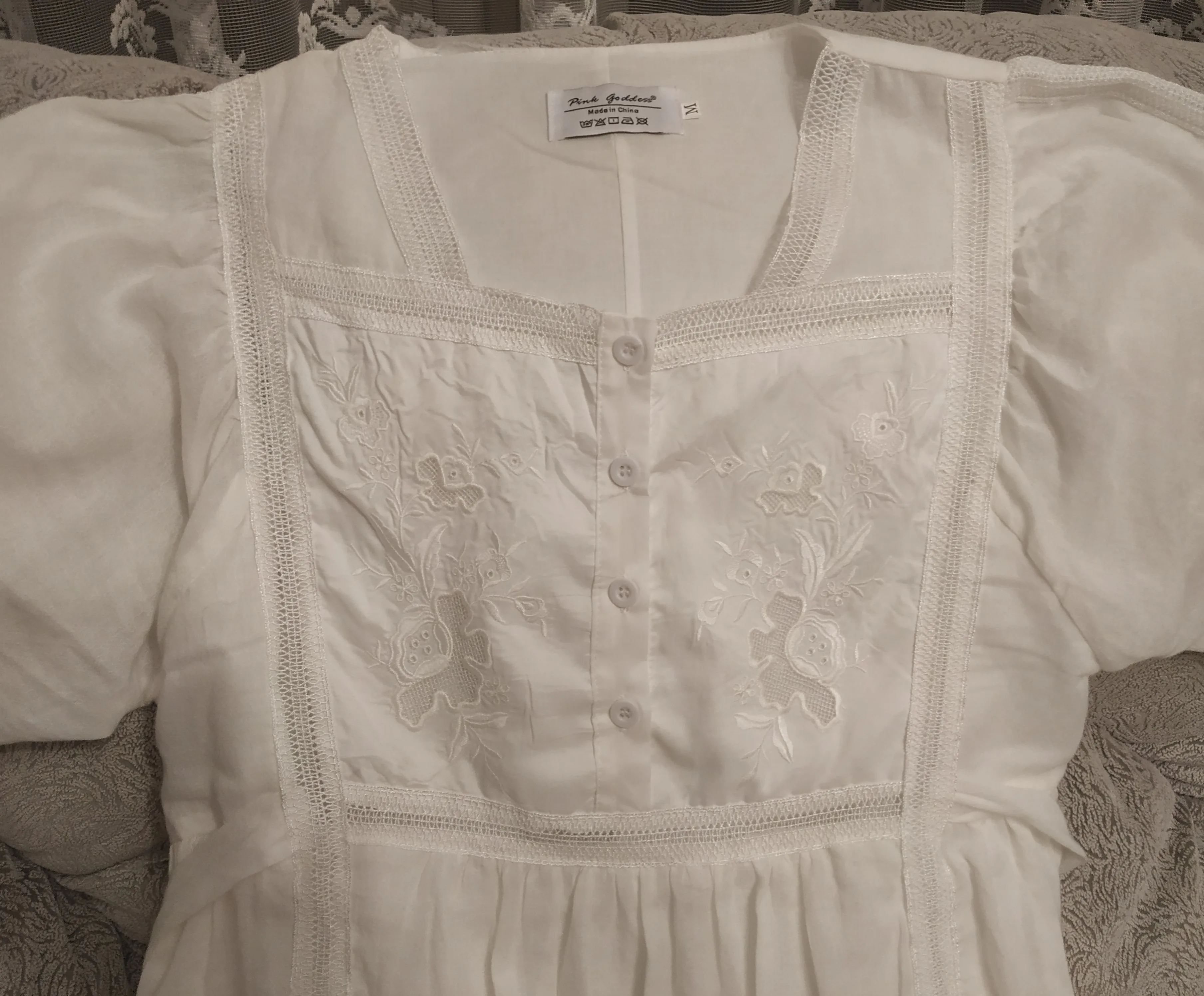 Gorgeous! I wear a 36B bra, and the XL fit beautifully... It looks just like the pictures. I chatted with the seller about the size, and they were SO helpful! Thank you!!!