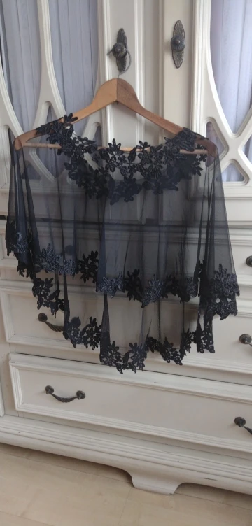 Women Black Applique Tulle Evening Prom Cape O-Neck Solid Soft Elegant Formal Sheer Cape Halloween Wedding Cosplay Shawl Red