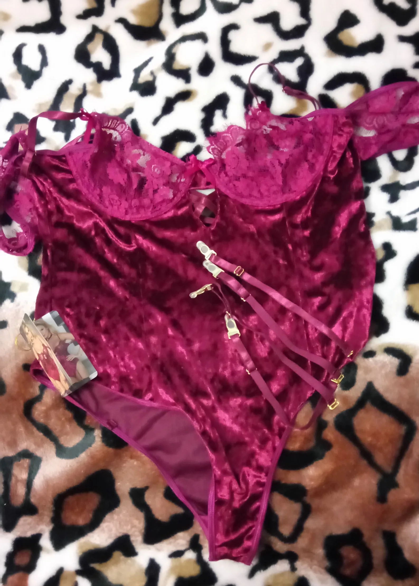 Quality, soft bodysuit. It fits me good + can fit a larger size bust. I love that shoulder ribbons can be adjusted! Also Stocking holding ribbons can be putted on/off, this is very good. I love that it have got a nice packing bag. I am looking forward to buy more for this seller :)