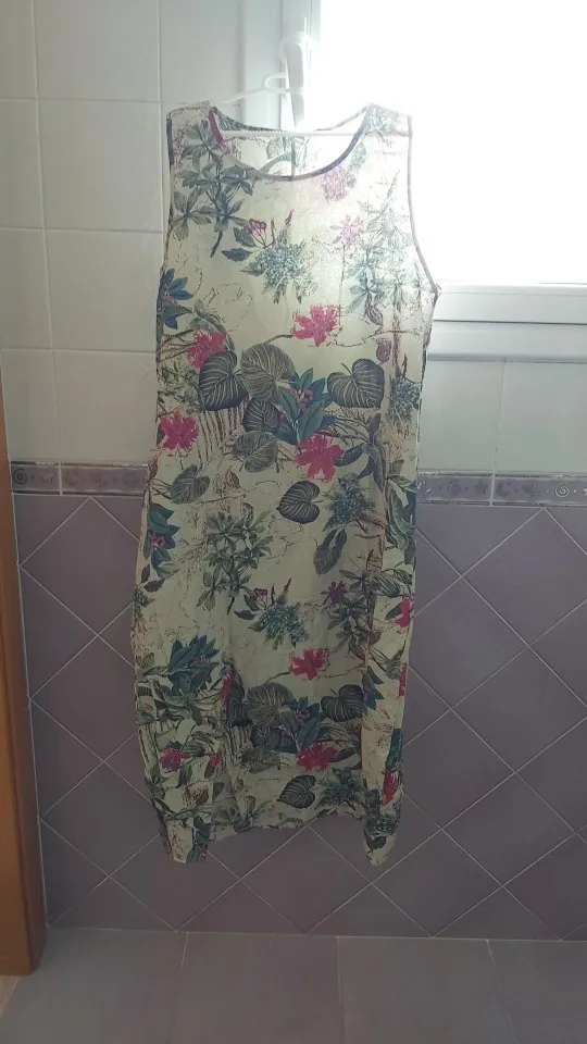 Women Dresses Vintage Sleeveless O Neck Leaves Floral Print Cotton Linen Long Baggy Dress женское платье vestido de mujer 2022