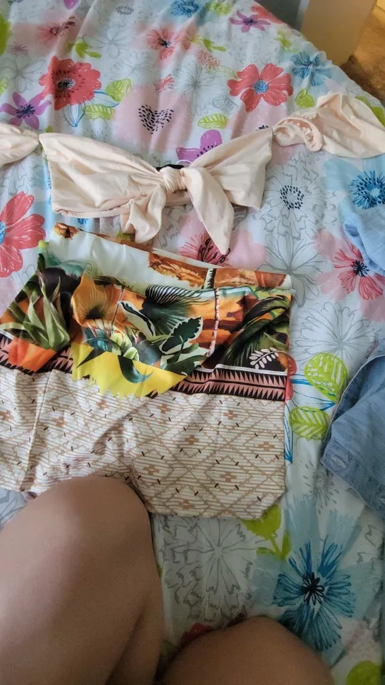 Women Off Shoulder Tie Front Top & Tropical Print Skirt Set Casual 2 Pieces Set