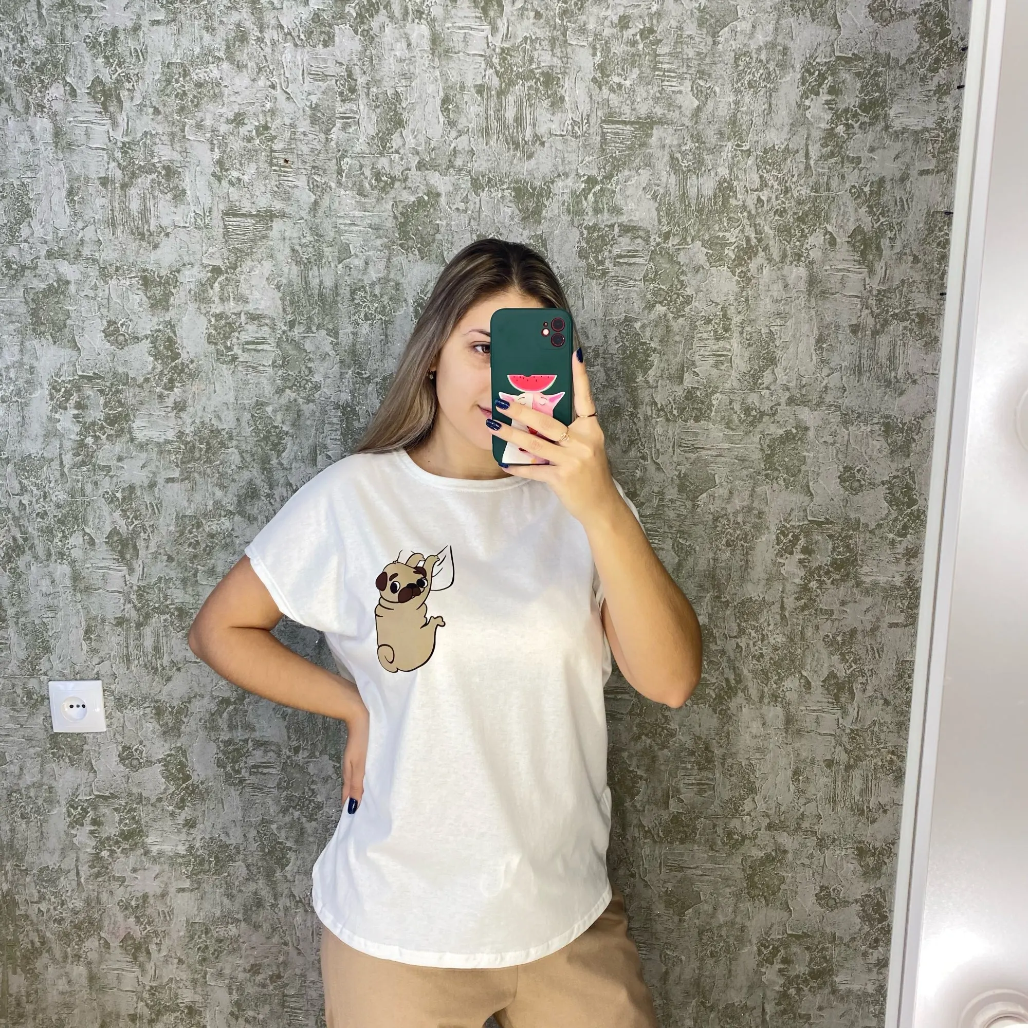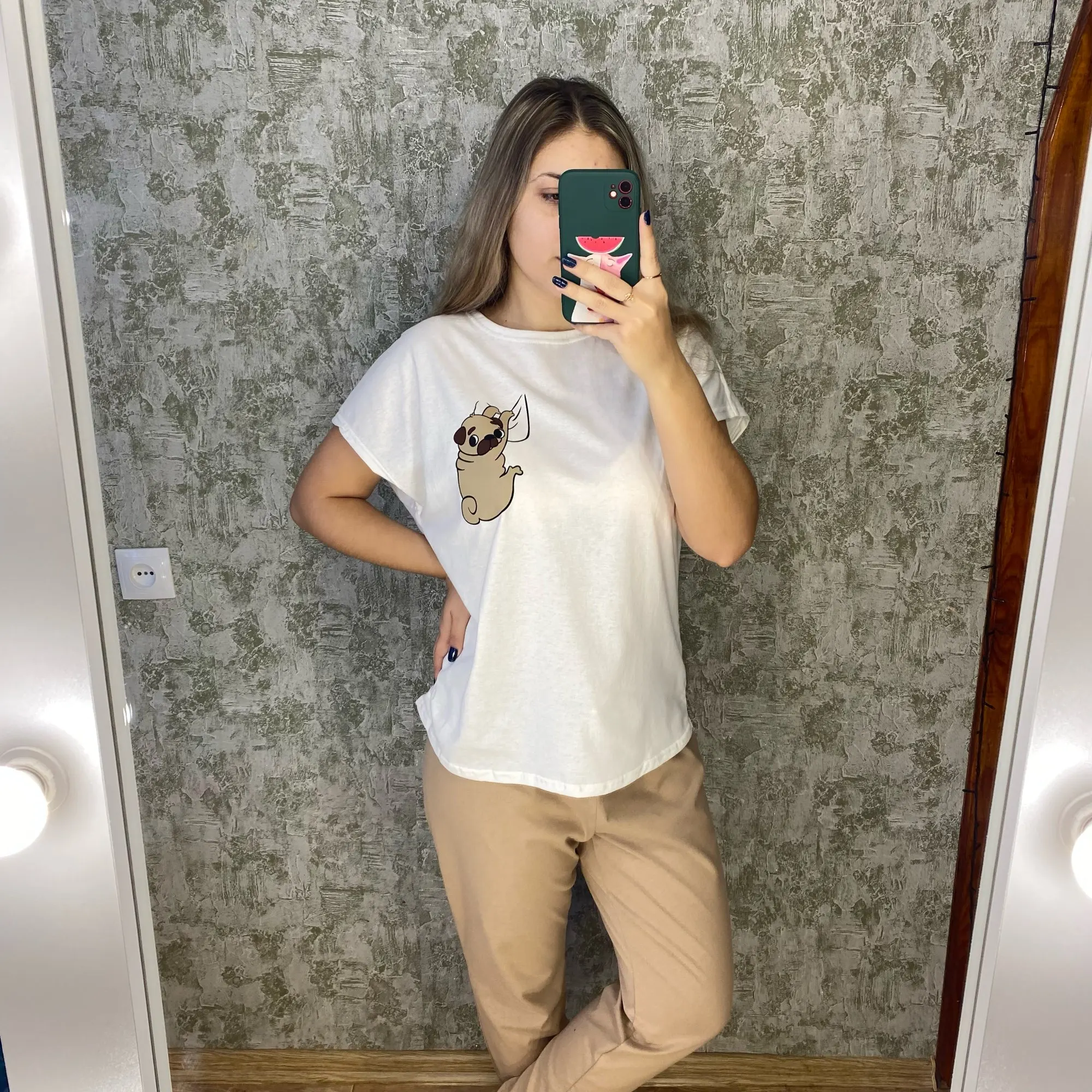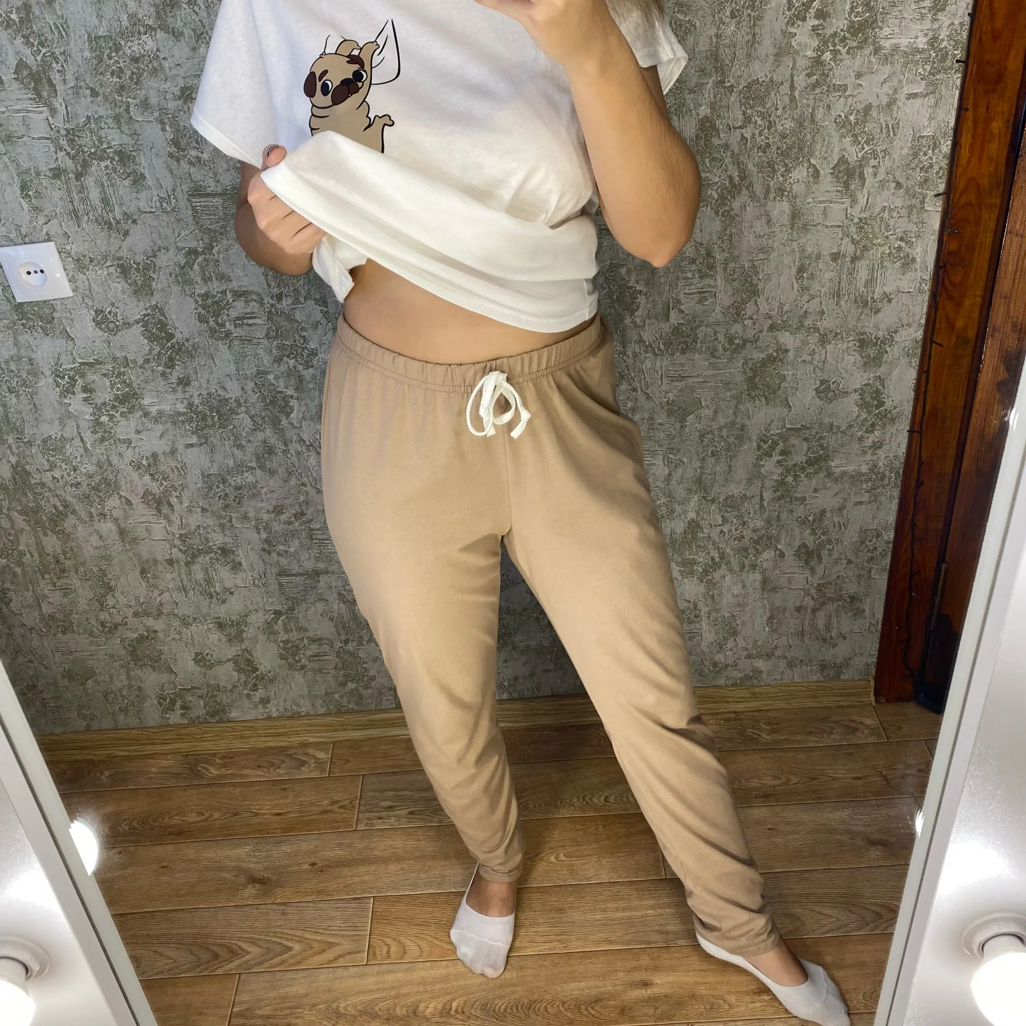 Women's pajamas shorts female Sleepwear made of cotton, home wear (pug, pea)
