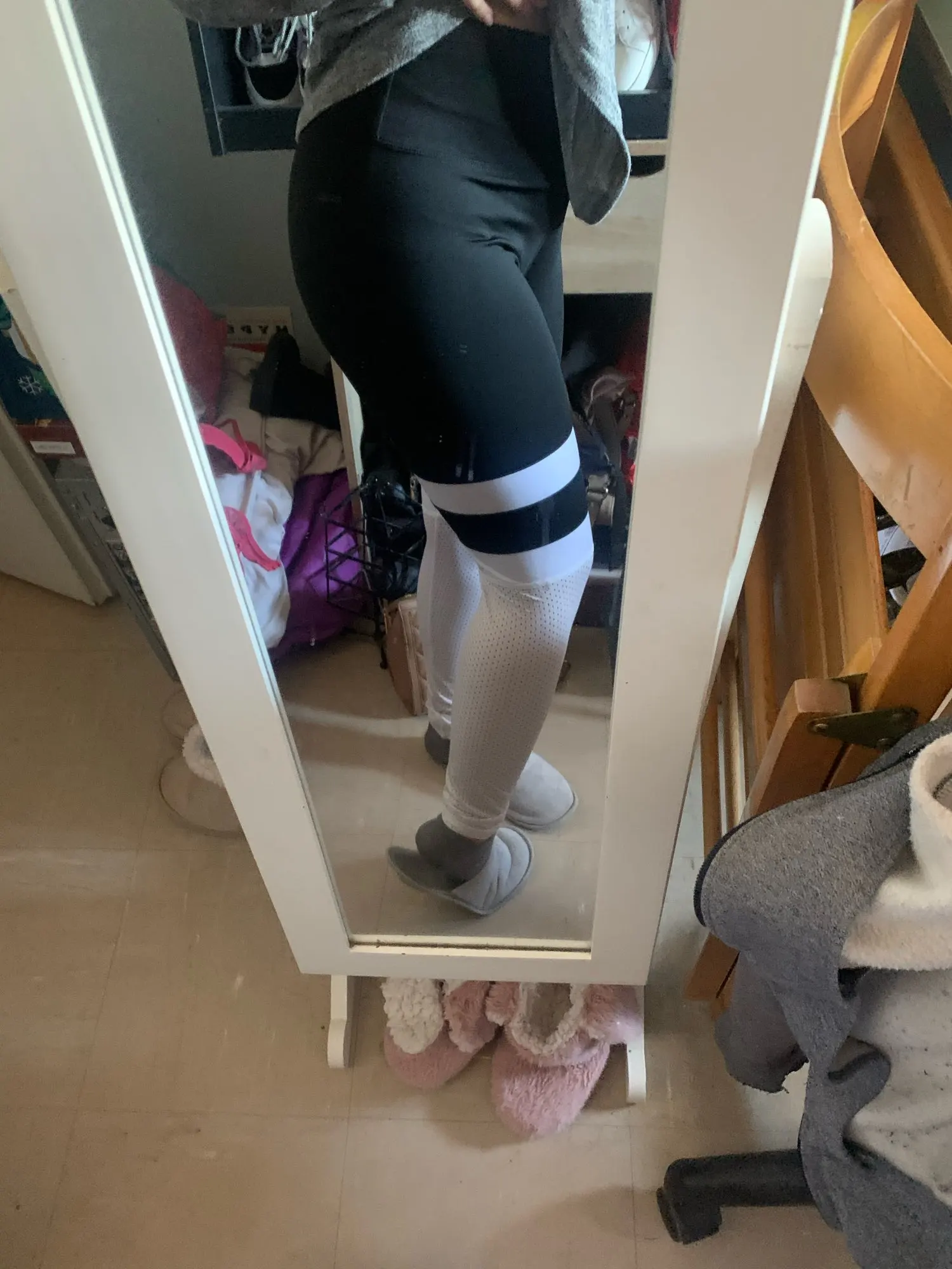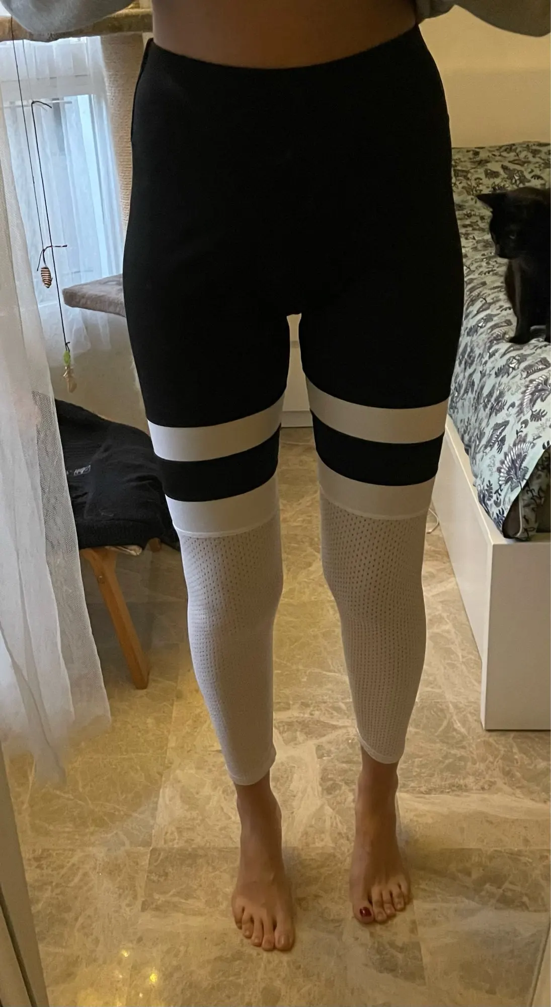 I ordered the XL thinking it might be too small because these things usually are. However, they are a true XL and are slightly too big for me. White part is all mesh, so not suitable for wintertime, but waist-band is slimming and style is very nice.