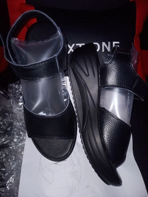 Excellent sandals made of genuine leather, very soft and comfortable with good cushioning, well stitched and free of defects. The specified size table corresponds to its description, my foot is 25 cm long, the specified 9 size fits perfectly, but the size of the shoe is more suitable for a long and narrow foot, but can be small for a wide foot.