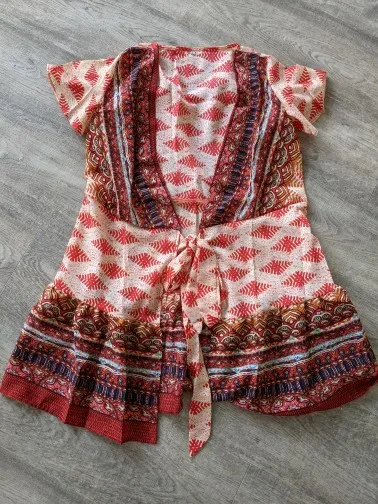 Women Short Sleeve Wrap Boho Floral Mini Dress Ladies Summer Sundress Holiday V neck Short Sleeve Print Dress 9 Colors